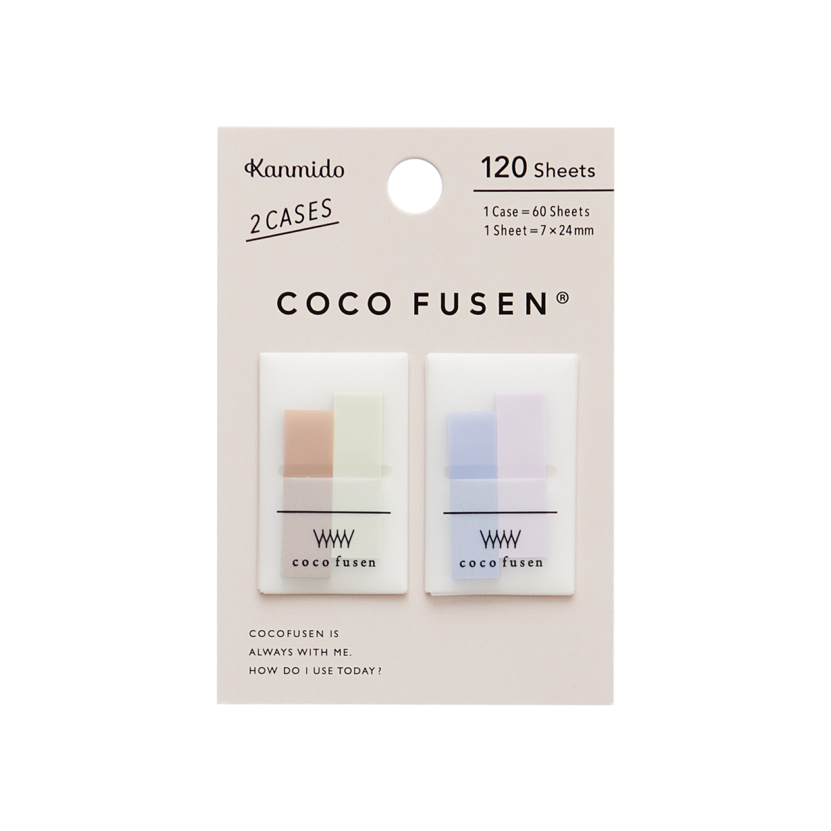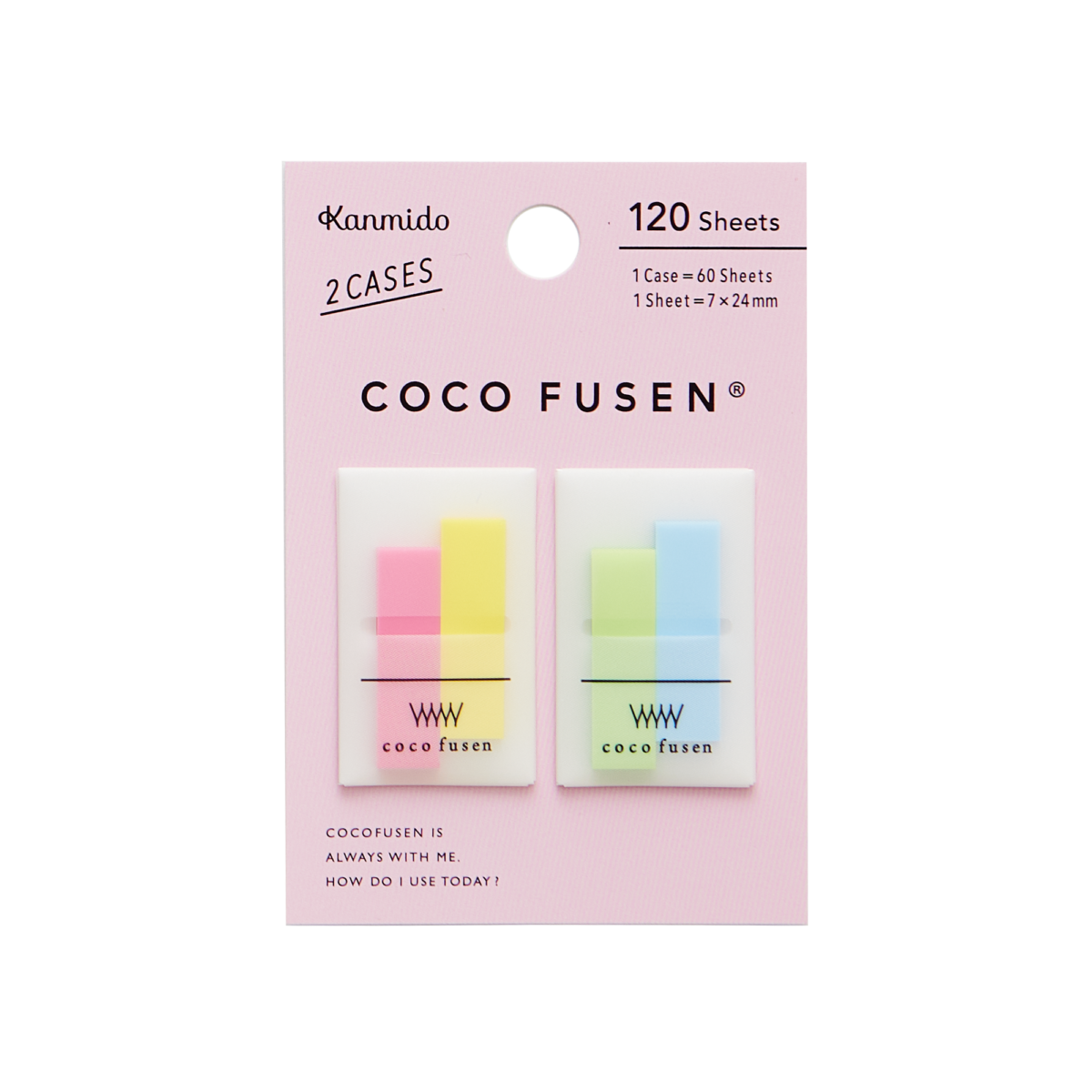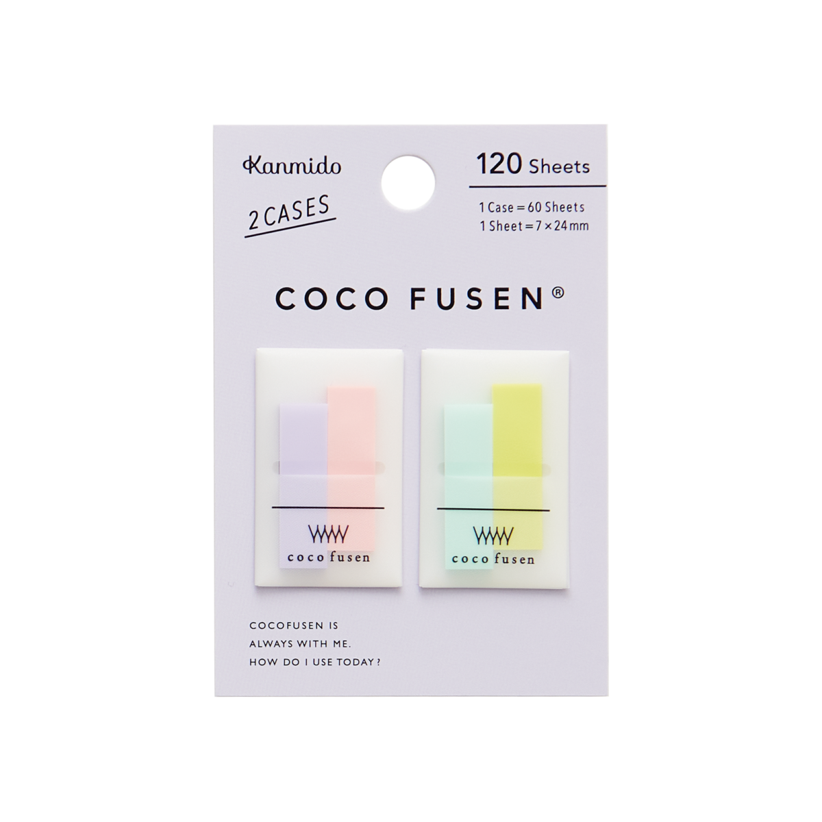 ミニサイズは、“タテに短い”が特徴。ココフセンの従来規格はふせんのタテの長さがすべて42mmですが、ミニサイズは24mmで、約半分近くの短さです。