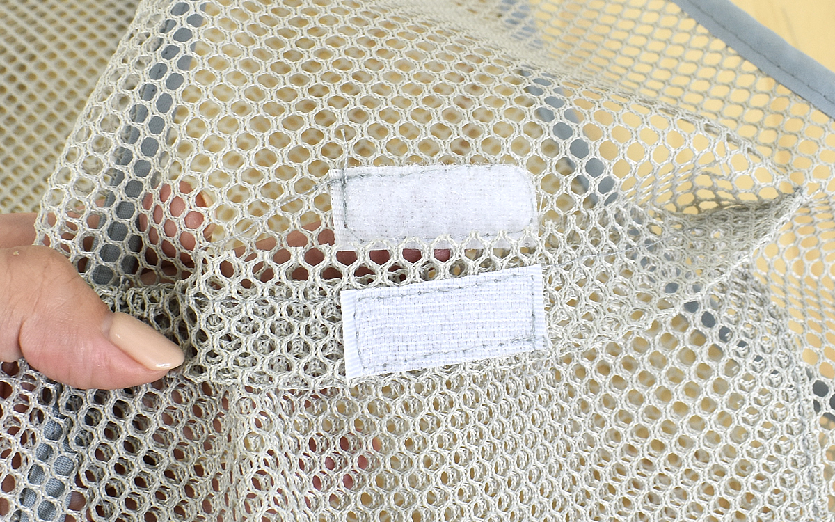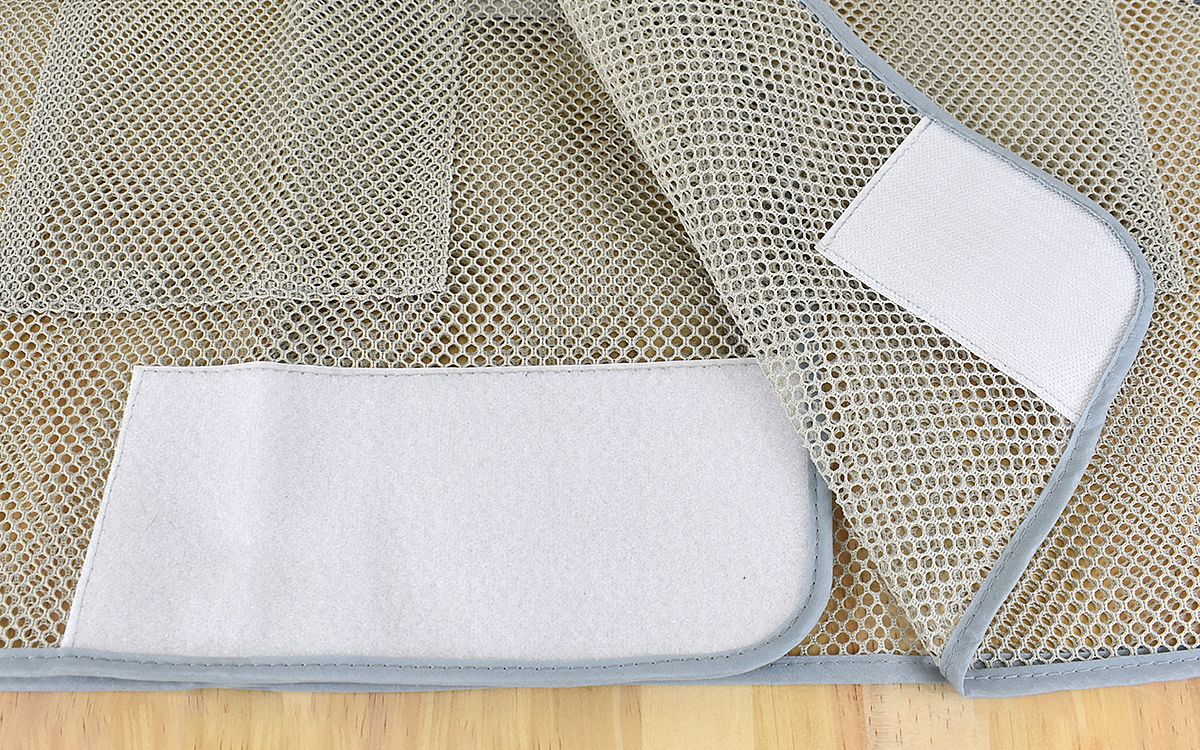 ポケットは前面に横並びで2個、背面は縦並びで2個ついています。全て約14cm×16cmと保冷剤やカイロ入れに便利な大きめサイズですが、ポイントは背面のポケット。縦に2つ並んでいるので、自由に温度調節がしやすいというのが最大のメリットです。