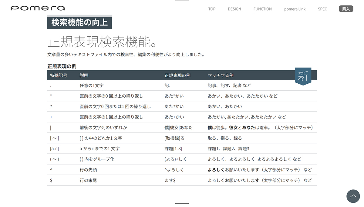 ↑正規表現検索機能。ここに載っているのは一例で、ほかにも検索方法はあるそうです