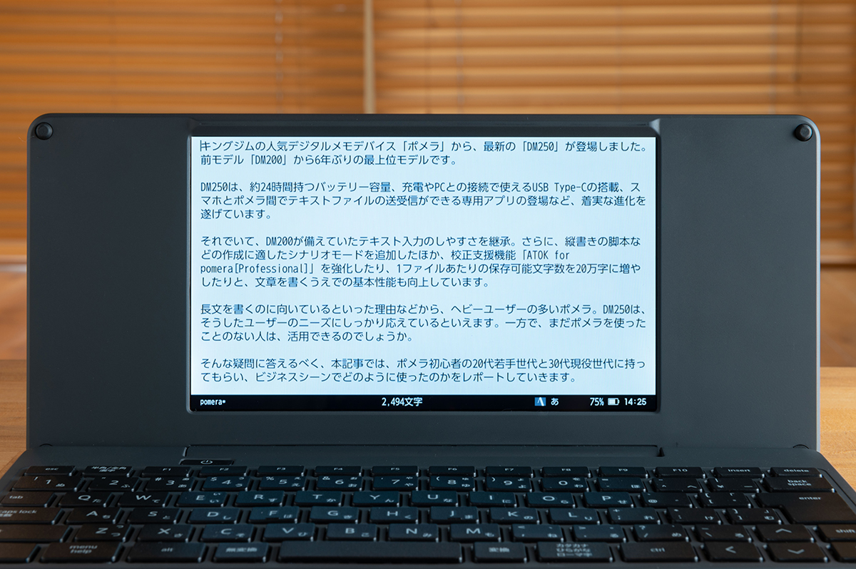 長文を書くのに向いているといった理由から、ヘビーユーザーの多いポメラ。DM250は、そうしたユーザーのニーズにしっかり応えています。一方で、まだポメラを使ったことのない人は、活用できるのでしょうか。