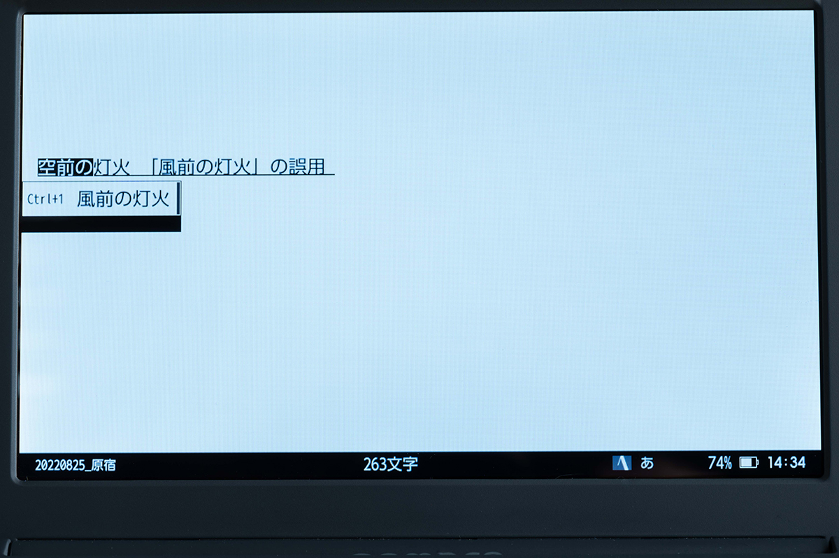それと入力中、誤字になりそうなところを変換時に直してくれました。ATOK for pomera[Professional]による予測変換の精度の高さを感じました。あとで見返しても誤字はなかったと思います」