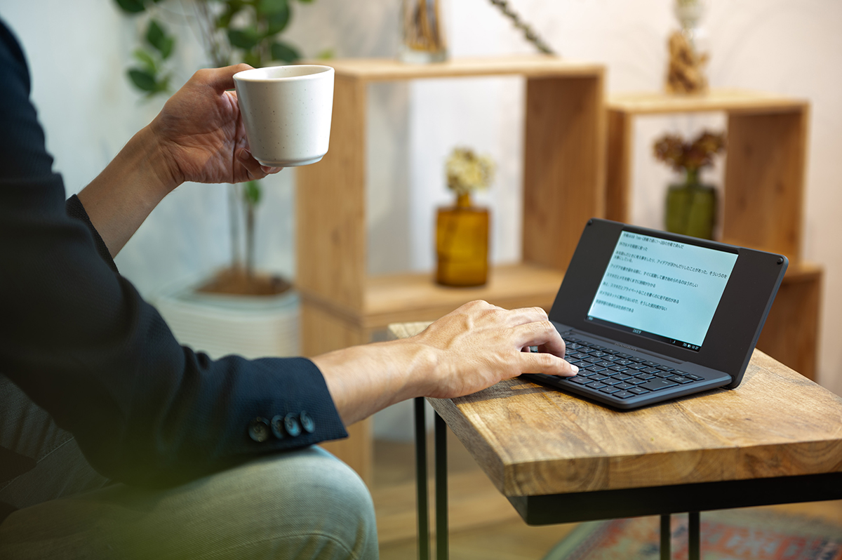 「外出先で企画のアイデアが浮かんだときや、情報整理をしたいときなど、自分の考えを言語化するために使いました。やはり取り出してすぐに入力できるのがいいですね。それと、1回の充電で24時間程度使えるため、外で使う際にバッテリーを気にすることがなく、安心できました」