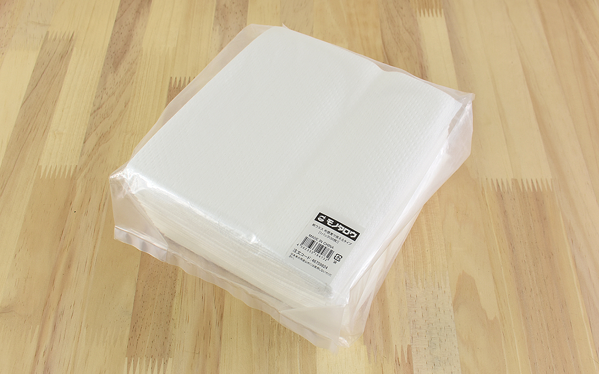 掃除や家事に欠かせないのが、雑巾やキッチンペーパーなどの汚れを拭き取るためのタオル類。雑巾は一度使うと汚れたものを繰り返し使用する必要がありますし、キッチンペーパーではゴシゴシと擦って汚れを落としたいときに心もとないですよね。衛生的で頑丈な雑巾がほしい…! そう思っていたときに見つけたのがモノタロウの「紙ウエス 布感覚で使えるタイプ」(604円/税込)です。