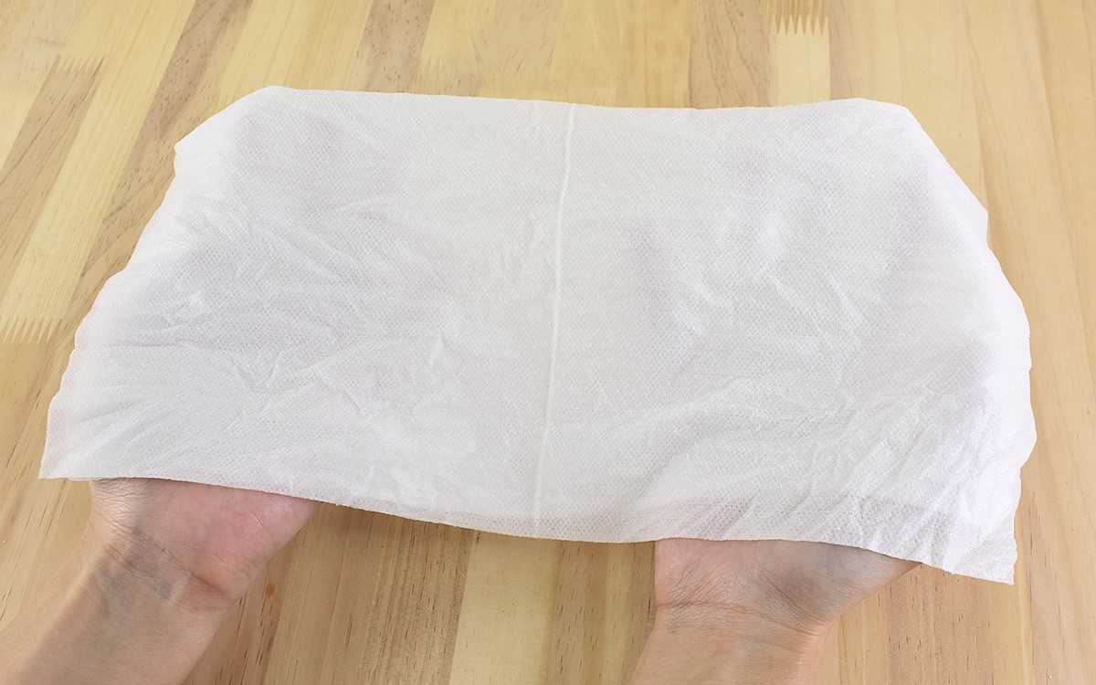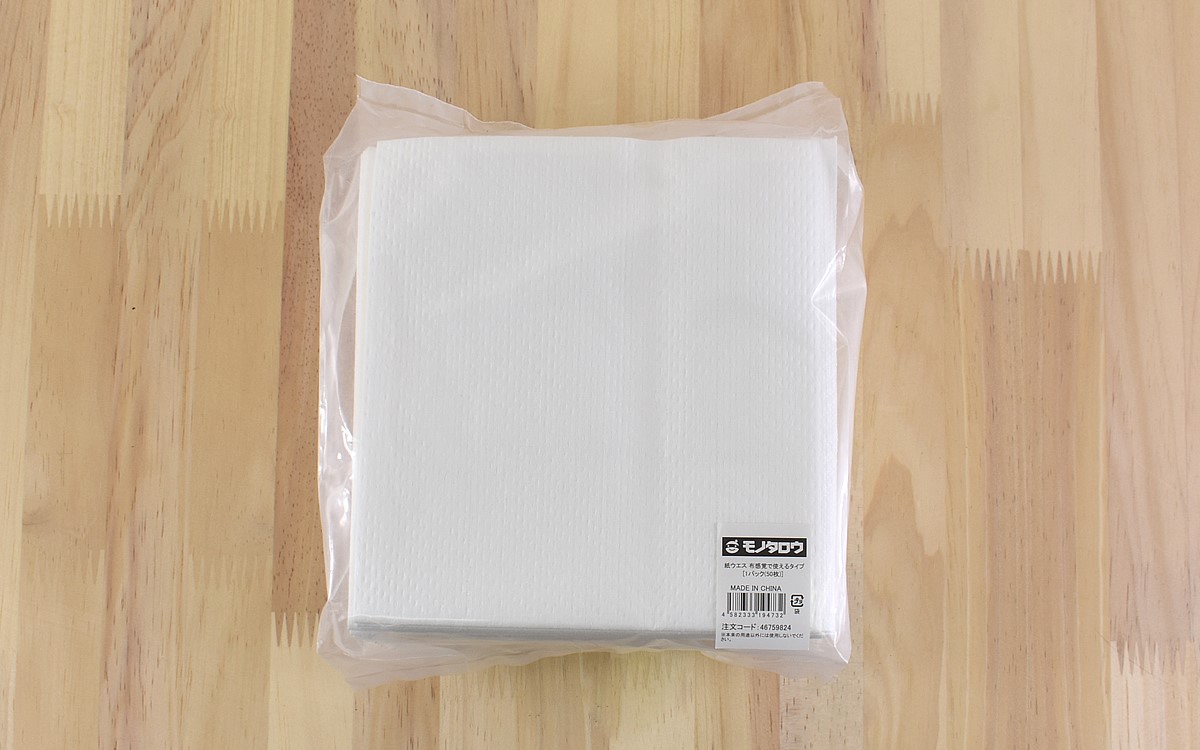 厚さは0.49mmあり、1パックあたり50枚入っていました。1枚を広げると300×330mmで、ちょうどキッチンペーパーのサイズ感ぐらいのイメージでしょうか。