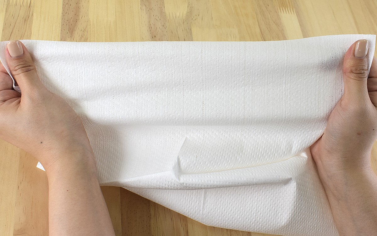 素材が紙ということで心配でしたが、実際に触れてみるとかなり頑丈。軽く引っ張っても破れず、雑巾のように絞って使うこともできるほど。掃除の途中に水を絞って、汚れを落としてから拭き掃除を再開させることもできます。