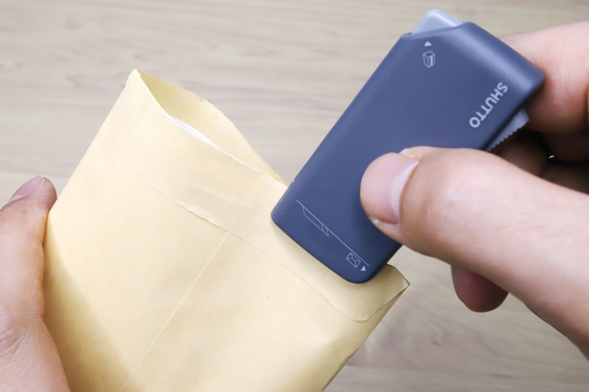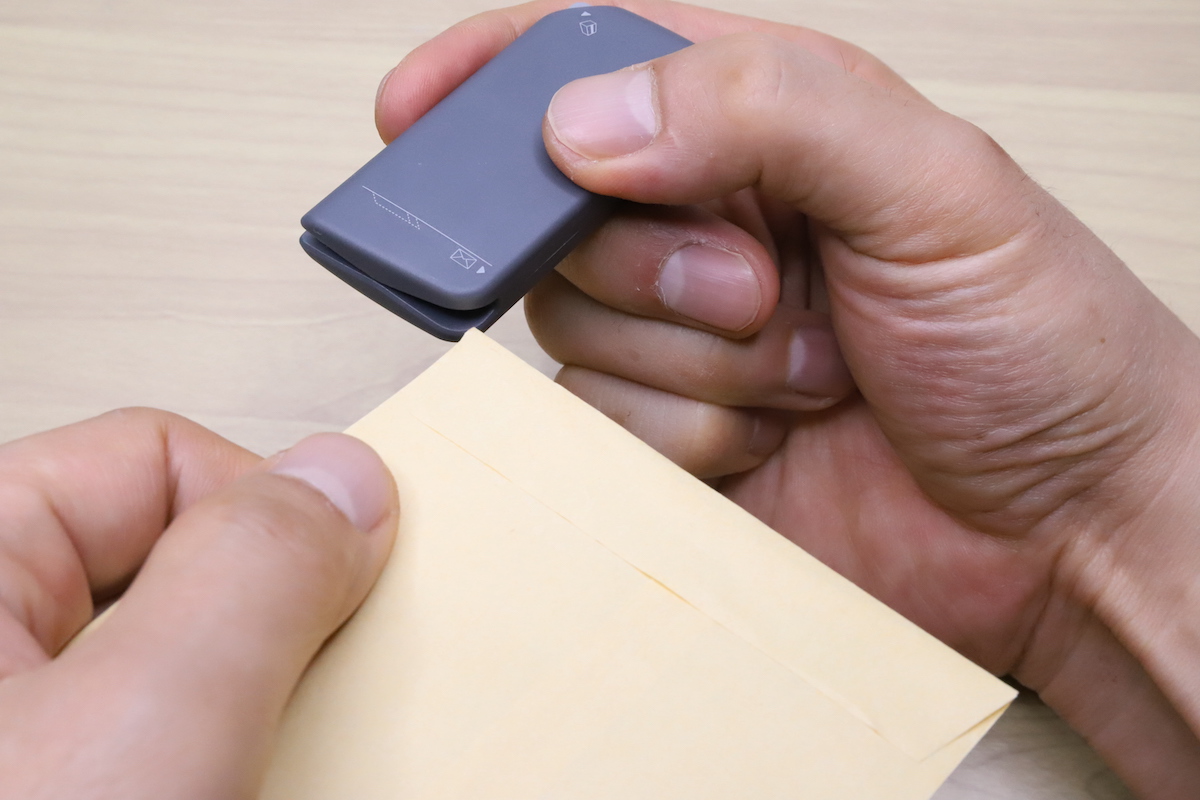 封筒タブの合わせ目から刃を入れて切る構造なので、カット幅はほぼゼロ。つまりこちらも中身にダメージを与える危険はないタイプだ。