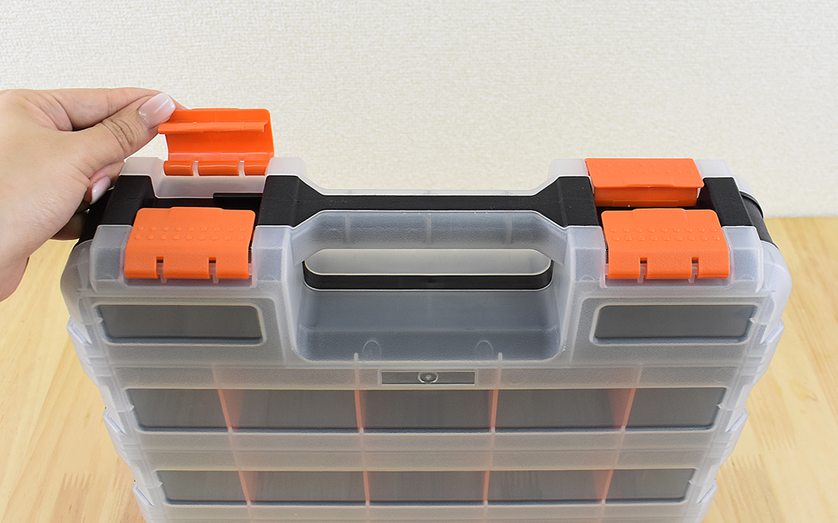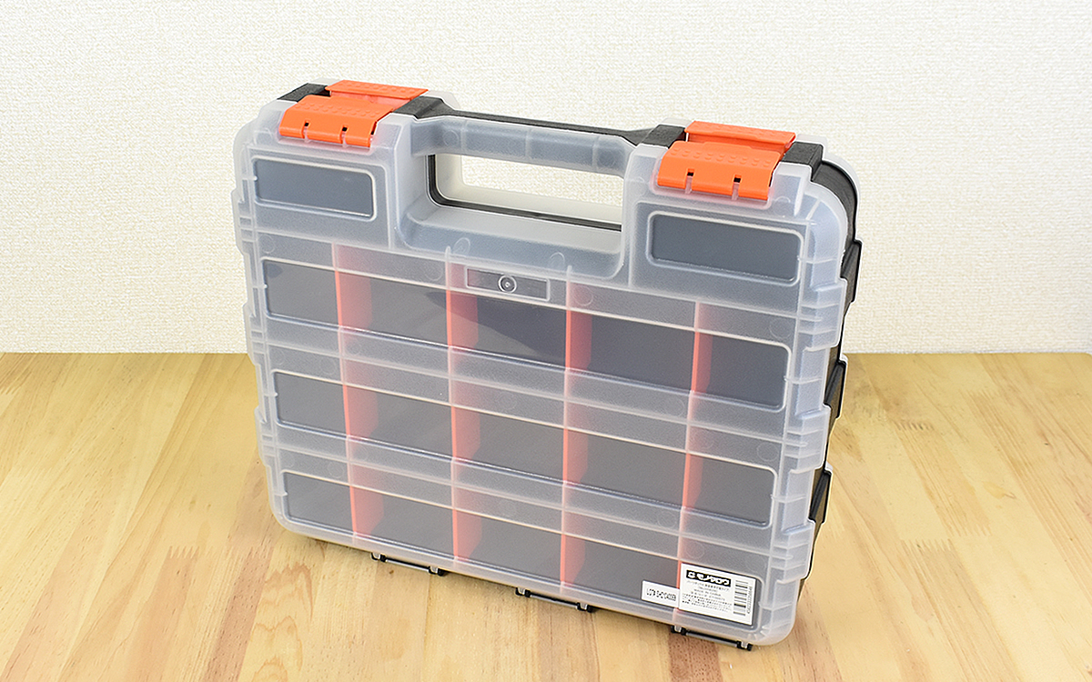 DIYのネジやボルトなど、小物の部品を収納するのに必要なパーツボックス。小さなボックスに入れていたのですが、部品の種類が増えてくると容量不足になりがちです。複数のボックスを持つようになると、どのボックスにしまったか分からなくなったり出先に持っていきづらかったりと不便さを感じるように…。そこでオススメなのが、「パーツボックス 両面使用可能」(1639円/税込)です。