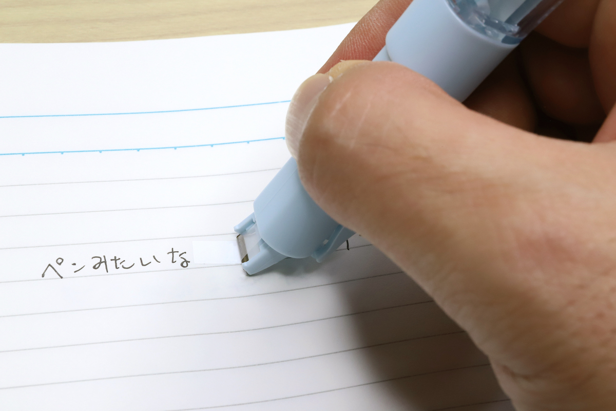 使い切りではあるものの、握りやすさ・引きやすさ・収納面とかなりオールマイティで、個人的には本当に良くできた修正テープだと思う。修正テープに苦手意識を持っている人にも、間違いなくオススメできる1本である。