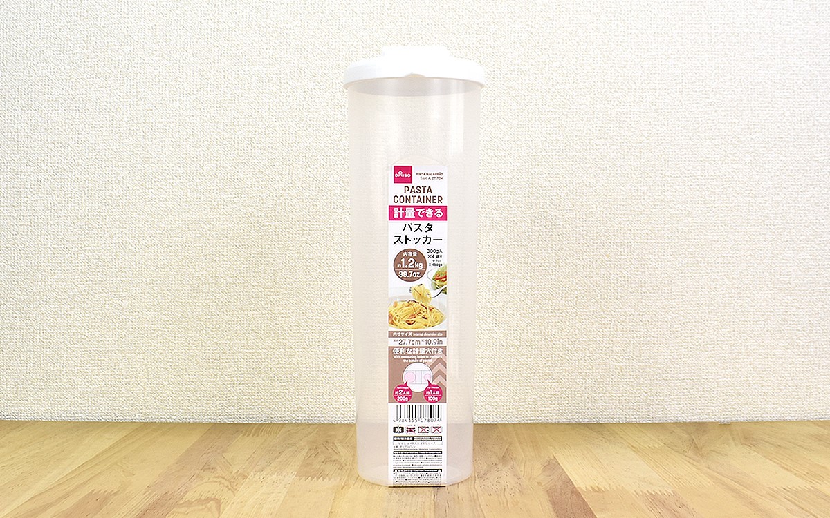 品数豊富であらゆる商品を扱う100円ショップ・ダイソー。中でもキッチン用品は定番品から便利グッズまで幅広い品揃えが特徴的です。今回はどこのご家庭でも大活躍間違いなしの、立てて保存できるメジャー付き「パスタストッカー」をご紹介しましょう。