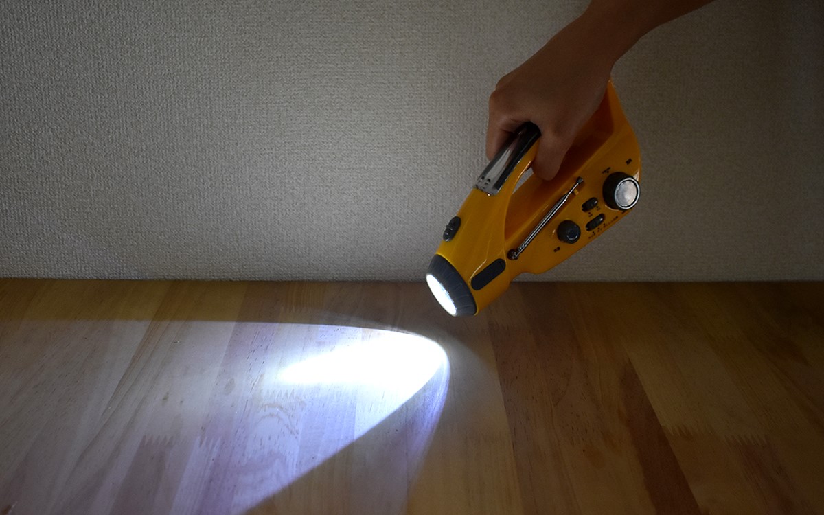 ライトも照射距離が長く、十分な明るさ。さらに赤色のライトが点滅するモードも備えており、災害時の誘導にも使えます。そのままサイレン音を出してみると、かなりの音量。これならどこかに閉じ込められた時も、しっかり存在をアピールできます。