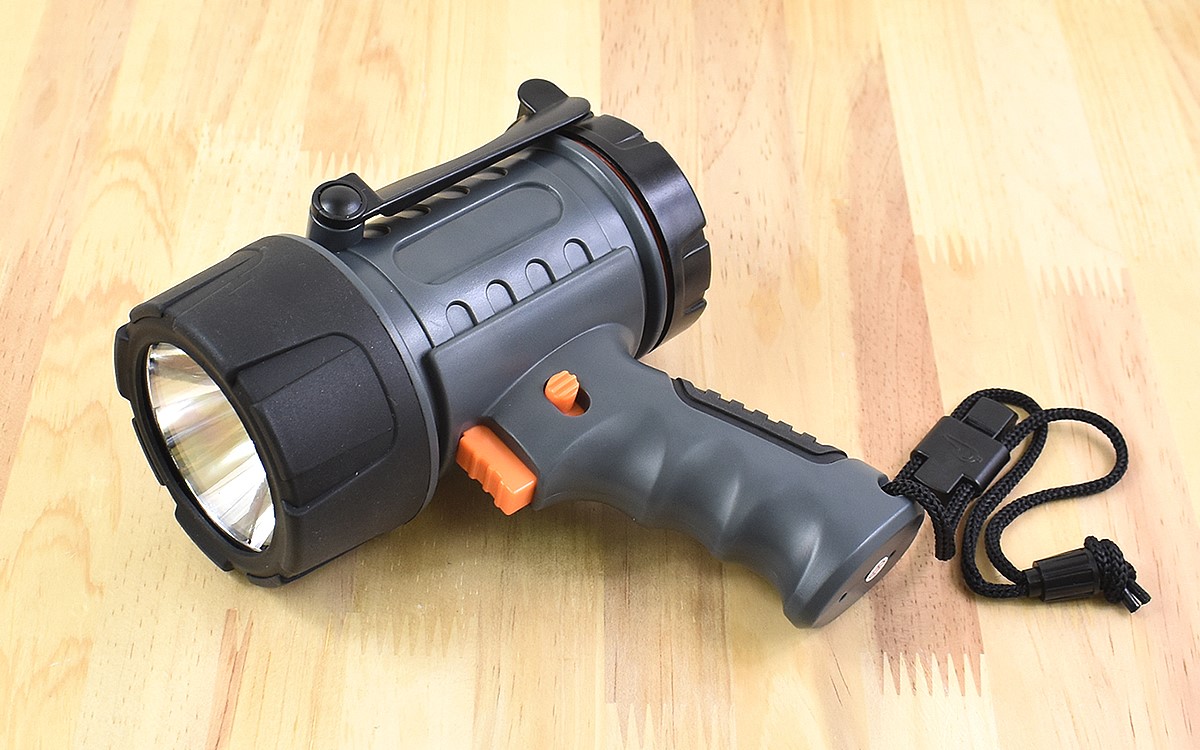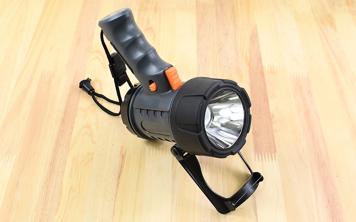 アウトドアでの日没後や停電などの非常時には、明かりをどのように確保するかは大事な問題ですよね。使い勝手が良くて明るく照らせる商品があったら…。そんな要望に応えてくれるのが「ハイパワーLEDスポットライト ガンタイプ 680Lm」(1859円/税込)です。