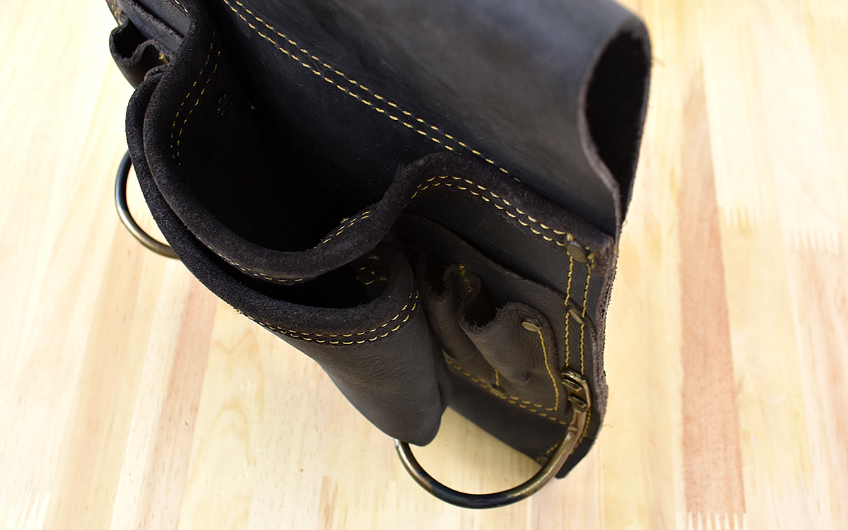 気になる収納の数はポケットが大中1つずつと小ポケットが2つ、細長いツール入れが4つにハンマーフック2つとかなり大容量。特にハンマーフックが用意されているのは本格的な作りですよね。ポケットの1つ1つに立体感があるので、収納や取り出しも簡単におこなえました。
