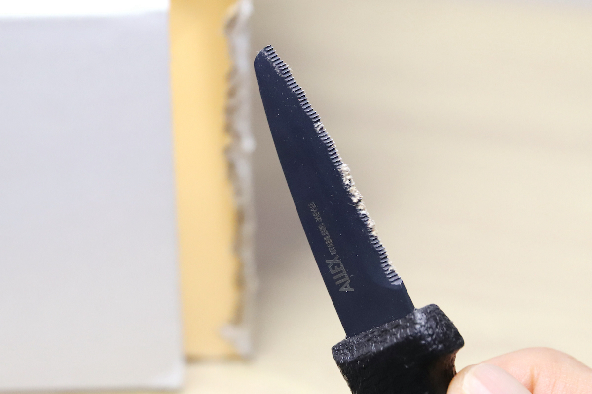 だから、ギザ刃をギコギコとノコギリのように動かして少しずつ着実に切っていくのが、安全で、正解と言えるのだ。