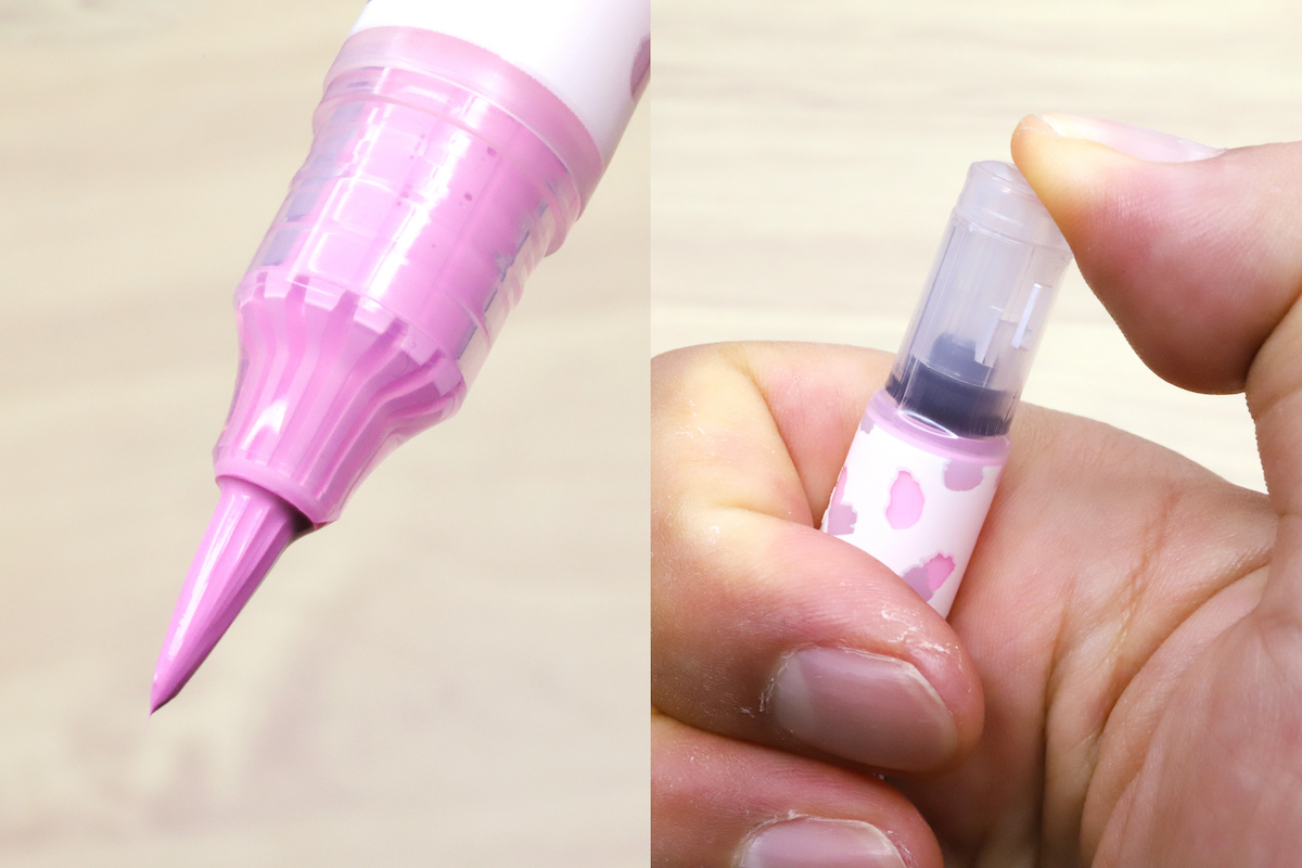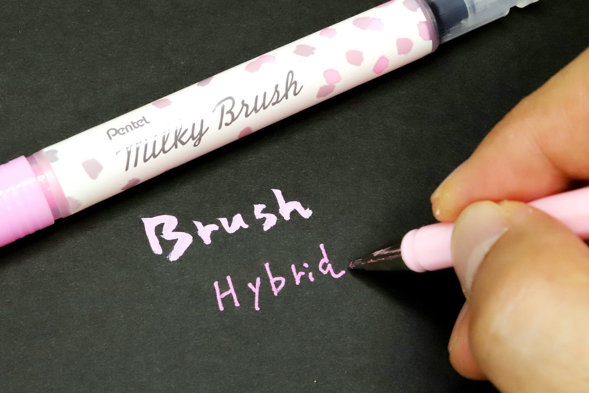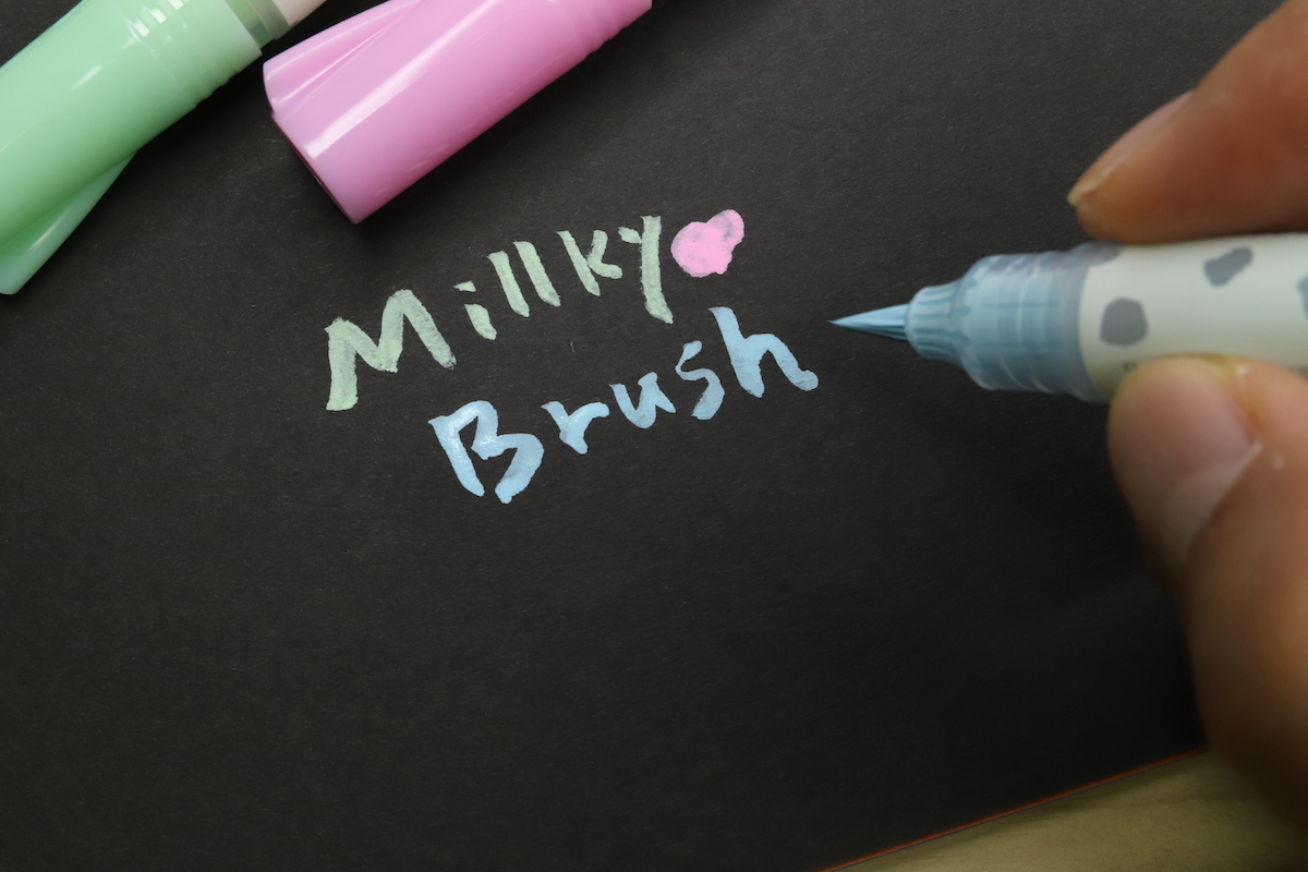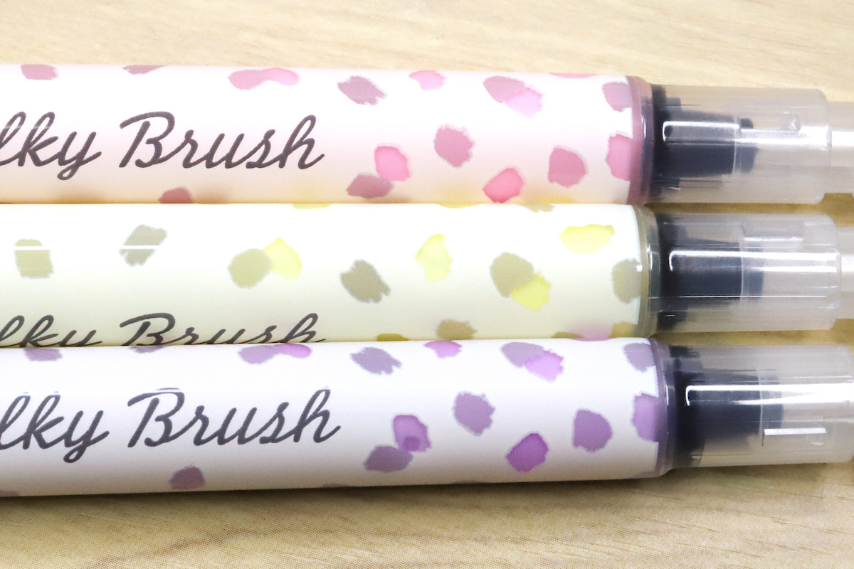 そんなカラーブラッシュブームの中、再びぺんてるから投入されたのが、あのミルキーインクと同様の不透明パステルインクを搭載した筆ペン「ミルキーブラッシュ」である。