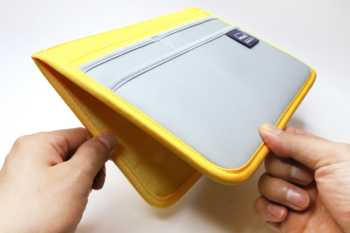 また、「ハサンド」の面白い機能として、スタンドモードがある。荷室の仕切りから取り外したら、フラップ面を折り目に沿って曲げ、端に付いている金属タグを磁石にくっつけて固定。するとポケットが自立する、というわけだ。