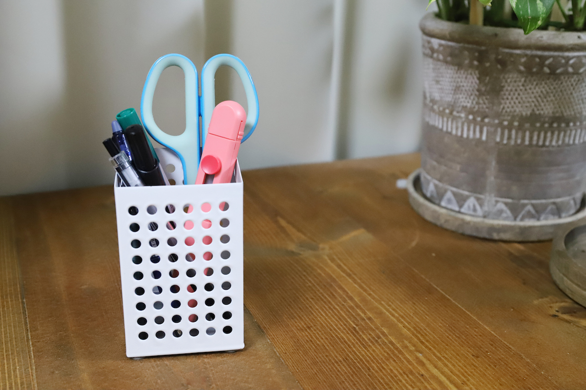 ではどうすればいいか? 一つの提案として「ホッチキスをペン立てに立てちゃう」というのはどうだろう。