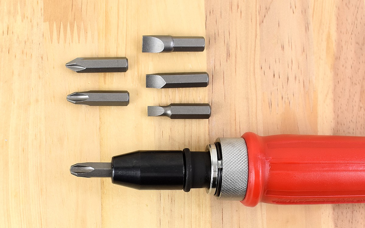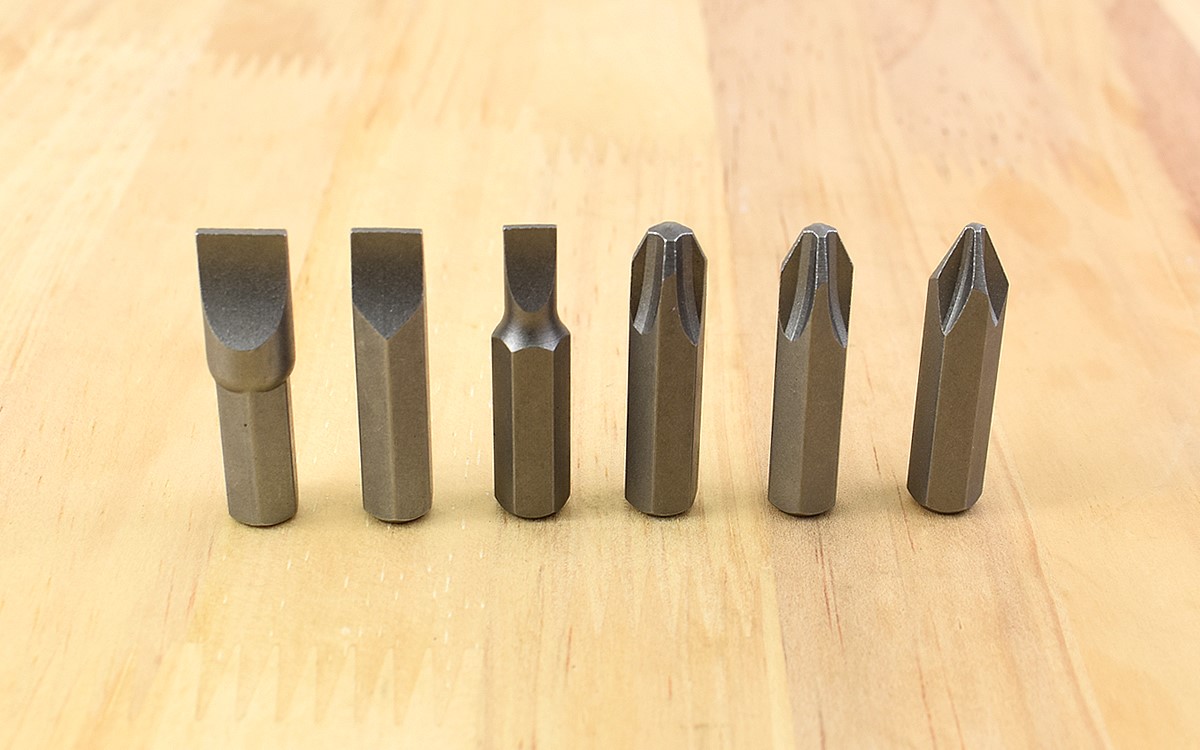 商品には本体とビットがセット。中身はプラスビットが3サイズ、マイナスビットが3サイズ入っていてすぐに作業に取り掛かれます。