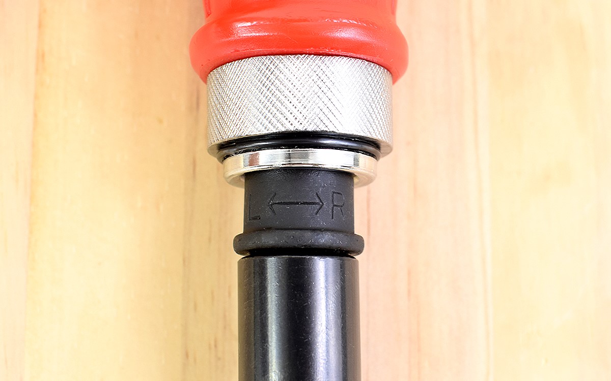 左回しと右回しの設定は、ホルダーを押し込みながらどちらかに回すことで設定。ただし「L↔R」の文字があるだけなので、使用前に回転方向を確認しておきましょう。
