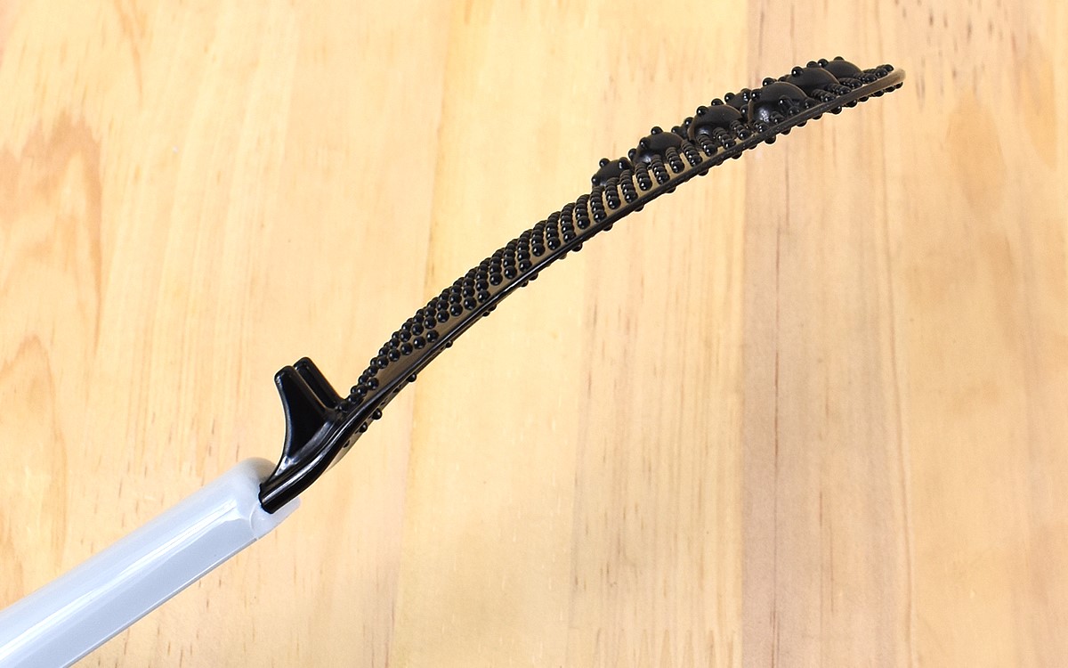 裏側はエンボス加工に加えて大きめの突起が付いているため、ジャガイモや茹で卵も楽につぶせます。先端の斜めの部分も、混ぜながら食材をカットするのにちょうどいい存在。マッシャーでつぶす際に大きめの食材をカットしたり長いうどんを食べやすく切ったり、ちょっとした時に使えるのでオススメです。