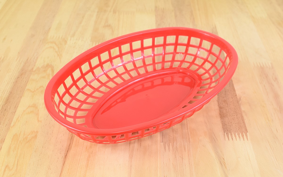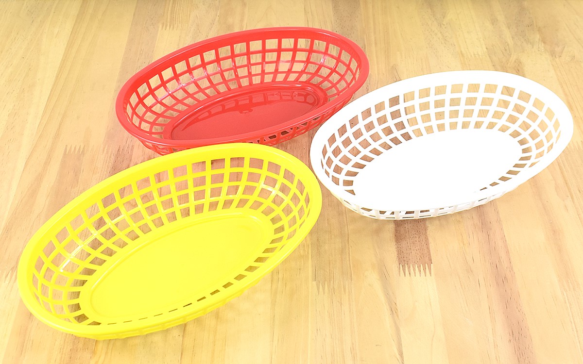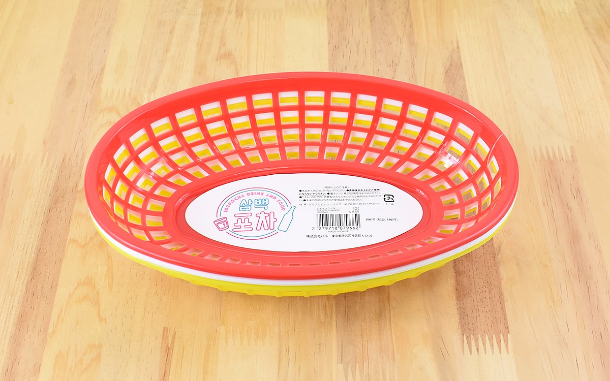 ポリプロピレン製のバスケットは、大きさ約240(幅)×155(奥行き)×47mm(高さ)と使いやすいサイズ感です。韓国の屋台を彷彿とさせるカラフルな色合いで、食卓に置くだけで明るい雰囲気に。良い意味でチープな見た目なので、レトロ感を演出できる一品ですよ。
