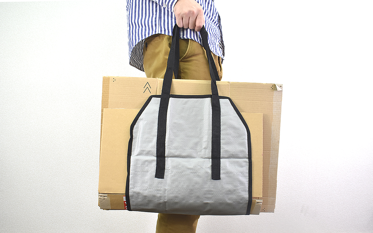 生活必需品からちょっとオシャレなインテリアまでを100円で展開しているダイソー。200円や500円などの商品が話題となることも多いですが、今回はダンボールの収納・持ち運びに便利な「キャリーシートバッグ」をご紹介します。