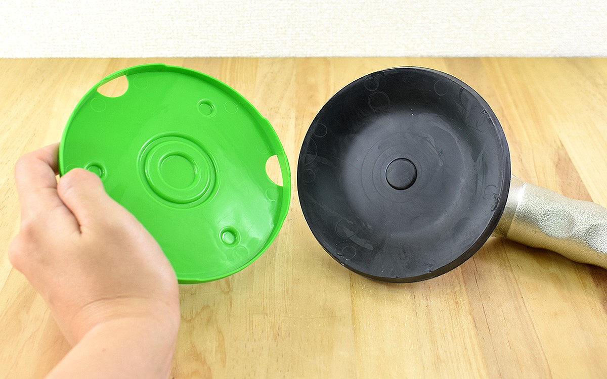 裏の吸着面には保護カバーがついているので、保管時に傷つけることなく安心して管理できます。使い方はとてもシンプルで、まずは保護カバーを外した状態で吸着面を持ち上げたい対象物にセット。あとは黒いレバーを横倒しにするだけで対象物が吸着されるので、手間をほとんど感じません。