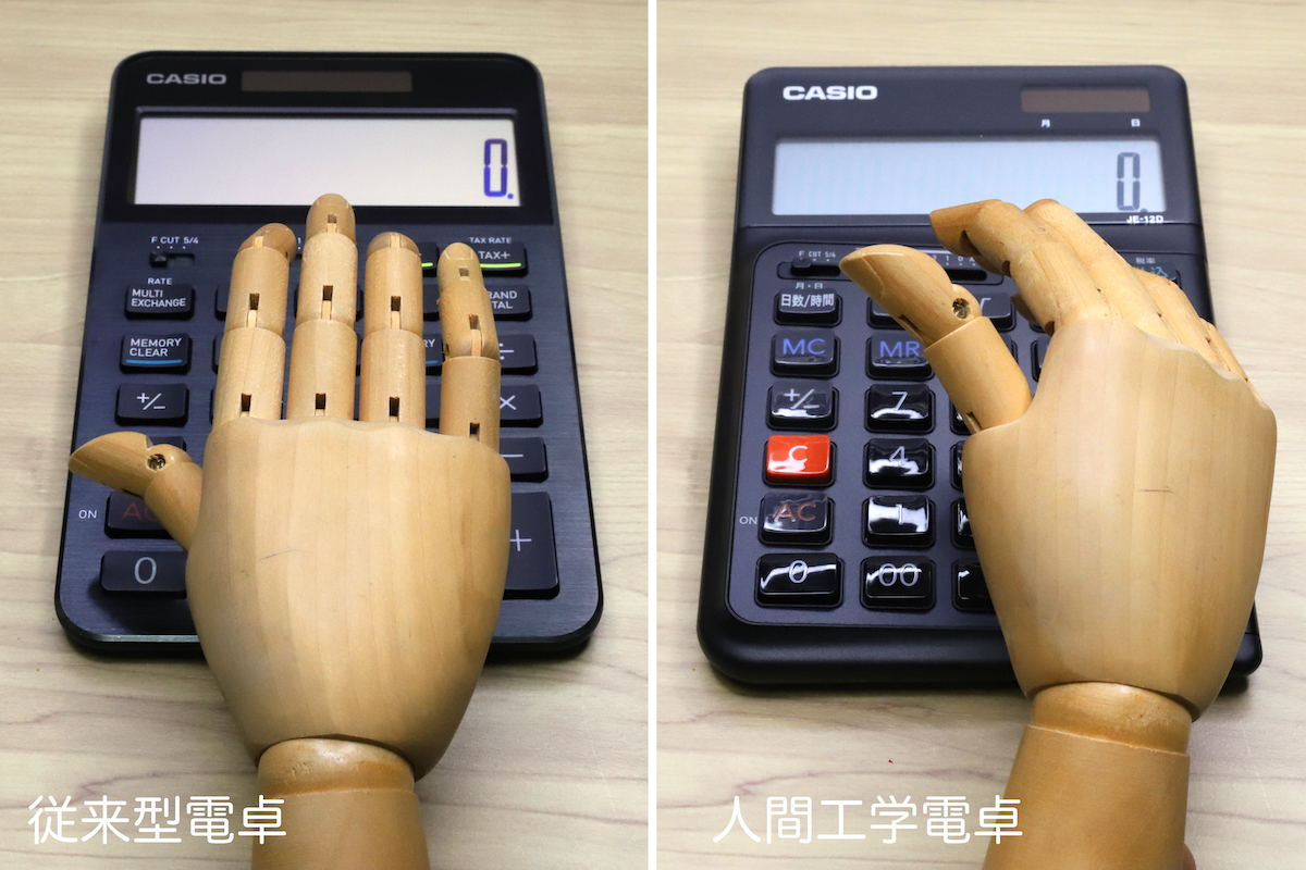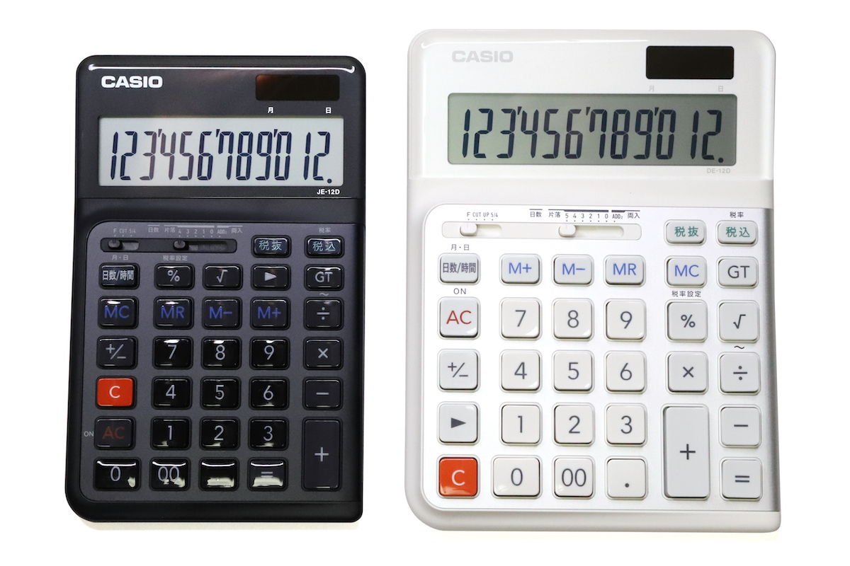 その“エルゴ電卓”というのが、2022年10月に発売されたばかりの人間工学電卓シリーズ「JE-12D」と「DE-12D」だ。
