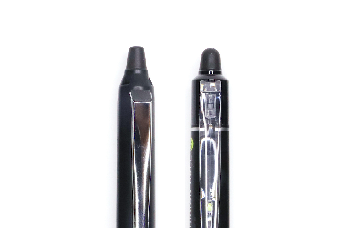 ところでこの3つの機能、なにか聞き覚えがある人もいるのではないだろうか? 例えば「Ver.2レフィル」のインク容量70%アップは、三菱鉛筆「ジェットストリーム 新3色ボールペン」に搭載された「長持ちリフィル」を思い出すし、「ノイズカットノック」もノックの静音性を高めるという方向性はぺんてる「Calm」と同じ(機構は別物だが)。もちろんペン先がブレない「チップホールドシステム」だって、ペン先がブレないゼブラ「ブレン」とよく似ているような……。