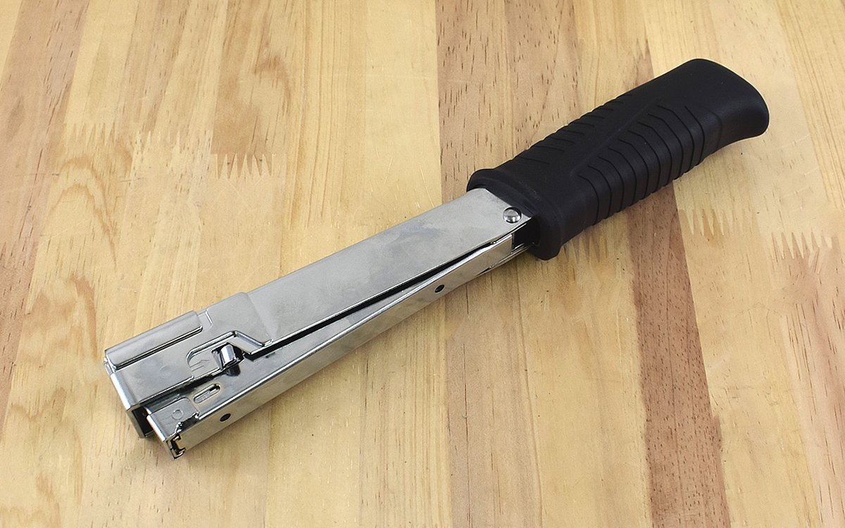 ガンタッカーは狙った場所に固定して使うので安定しますが、1度の動作が大きく作業効率が良くないところがデメリット。そんな初心者向けのガンタッカーより1歩進んで作業効率をアップできるのが、モノタロウの「ハンマータッカー」(3289円/税込)です。