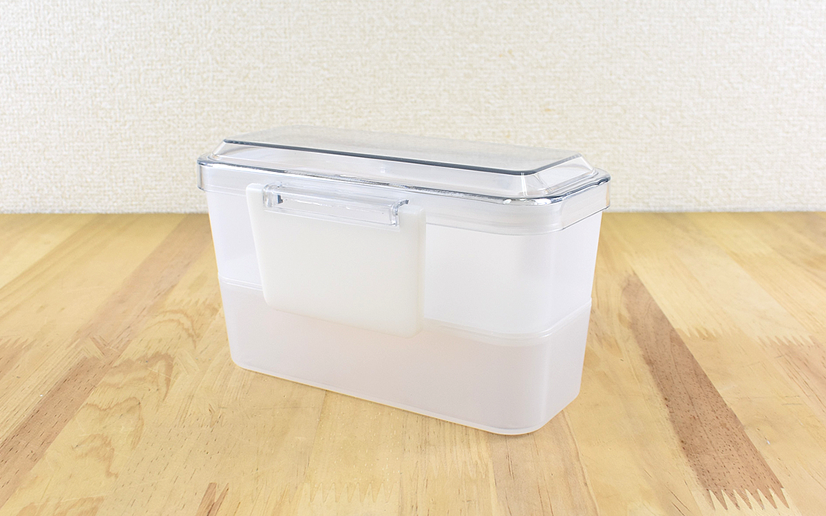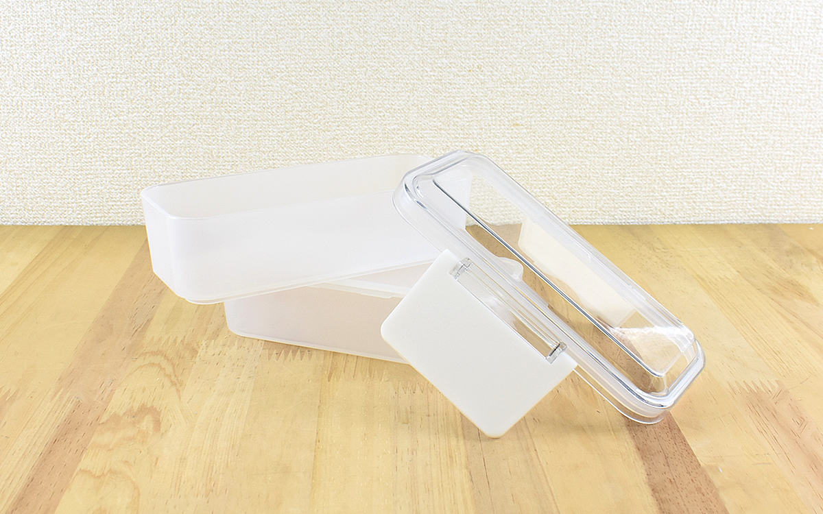 そんなとき3COINSで見つけたのが「【KITINTO】2段スリム型ランチボックス」(330円/税込)です。白系で半透明カラーのお弁当箱、なかなか見ないと思いませんか? フルーツサラダなどを入れたら映えそうかなと思い、購入してみました。