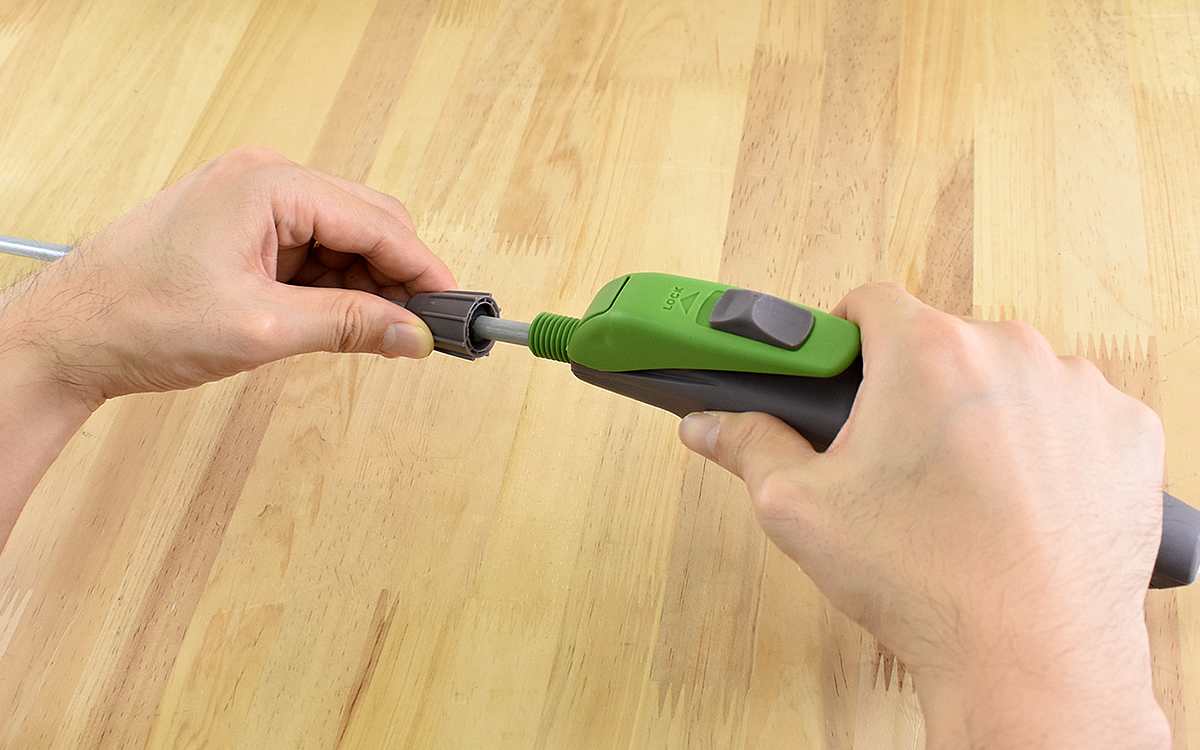 ノズルパイプの接続は、ノズル本体の頭に差し込んで固定するだけなので簡単です。固定もノズルパイプ側のキャップを回すだけ。キャップはパイプからすぽっと抜けてしまうので、なくさないように注意してくださいね。