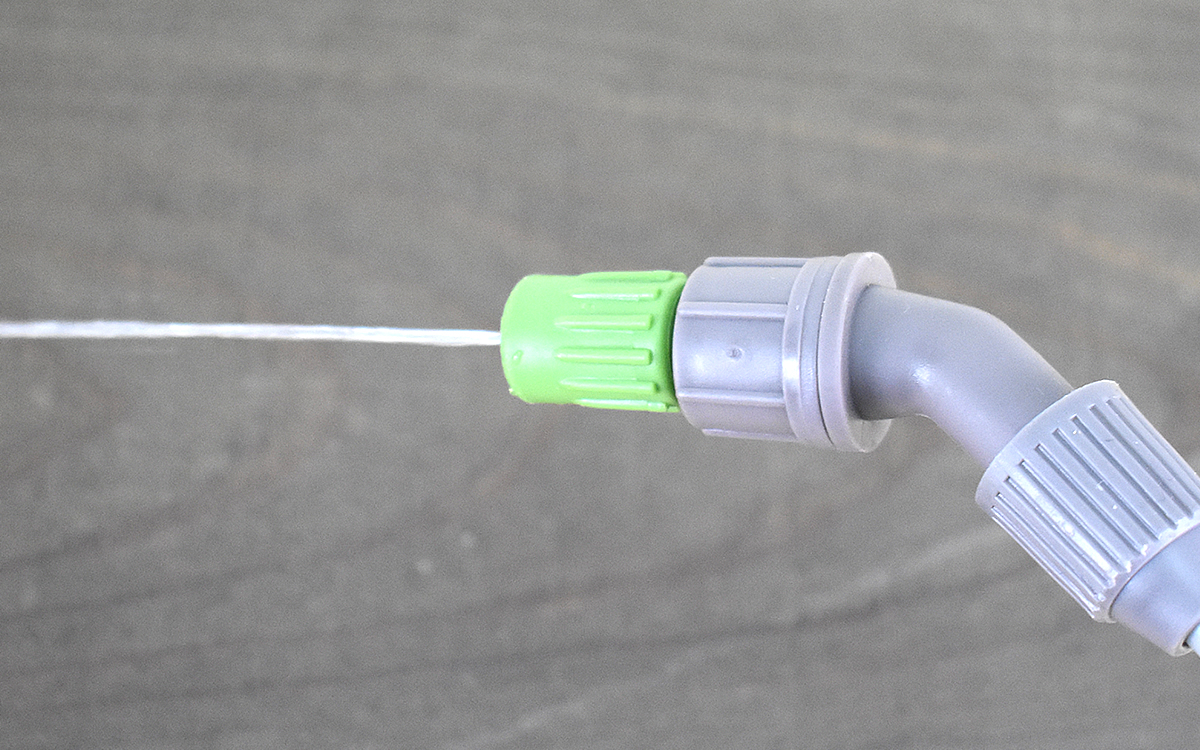 レバーにあるスイッチを押すと水が出て、放すと止まります。ずっと押していると手が怠くなりますが、同商品にはスライドロックがついているのがポイント。ロックをオンにすれば楽々と連続で散布することができます。