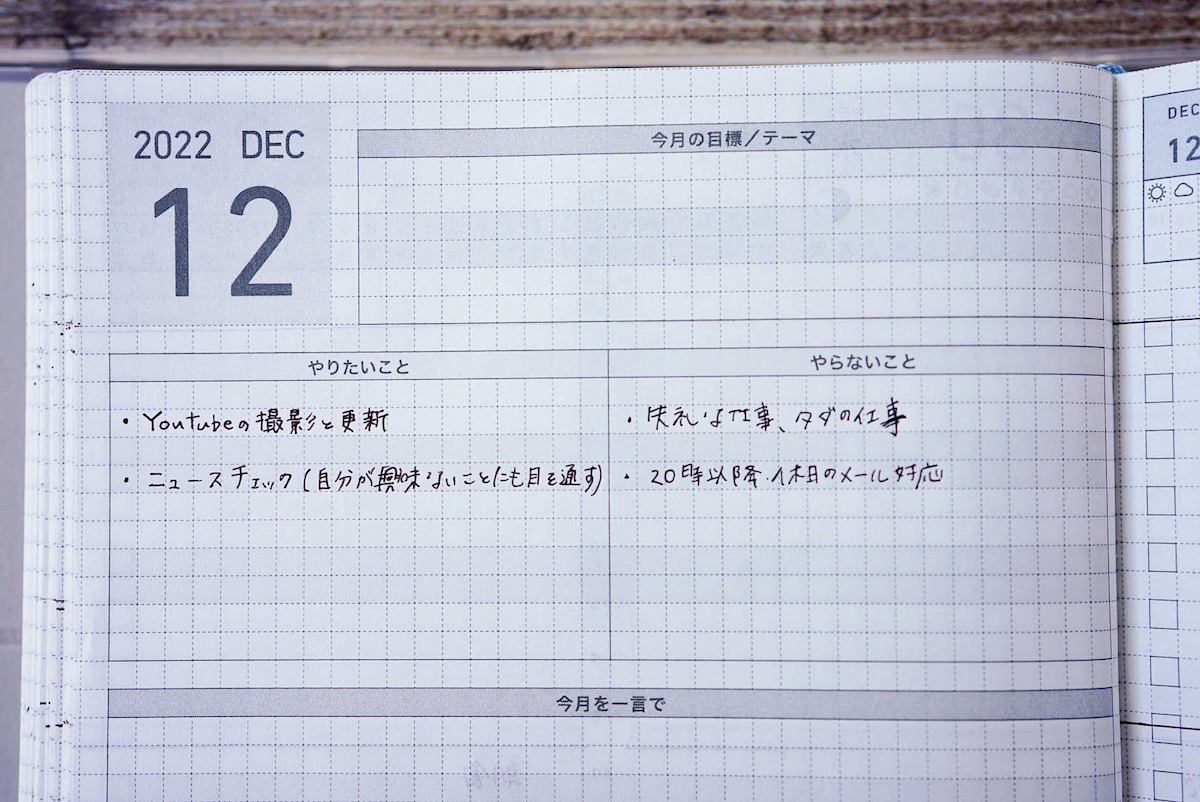 気が付くと一年が過ぎているという忙しい人にこそ、この手帳を使って毎日、毎月の目標を立てて振り返り、2023年の終わりには「今年は充実していたな」と前向きな気持ちで手帳を眺めて欲しいと思います。