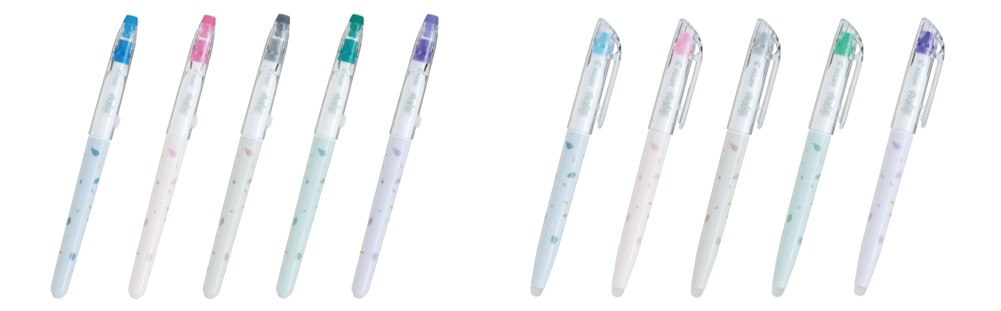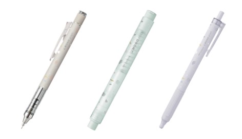 “書くもの(筆記具)”、“書かれるもの(ノート)”、“消すもの(消しゴムなど)”を通じて、学生の学びの時間を総合的に応援したいという思いから、2022年に初めて実施された、キャンパスノート、MONO、Dr. Gripのコラボ。第2弾ではFRIXIONを加えた4ブランドでの実施となります。それぞれのアイテムで、淡いカラーの洗練されたストーン柄「シアーストーン」のおそろいデザインを採用し、色や柄を組み合わせることができるので、さらに幅の広がるリンクコーデを楽しめます。