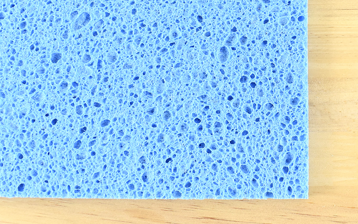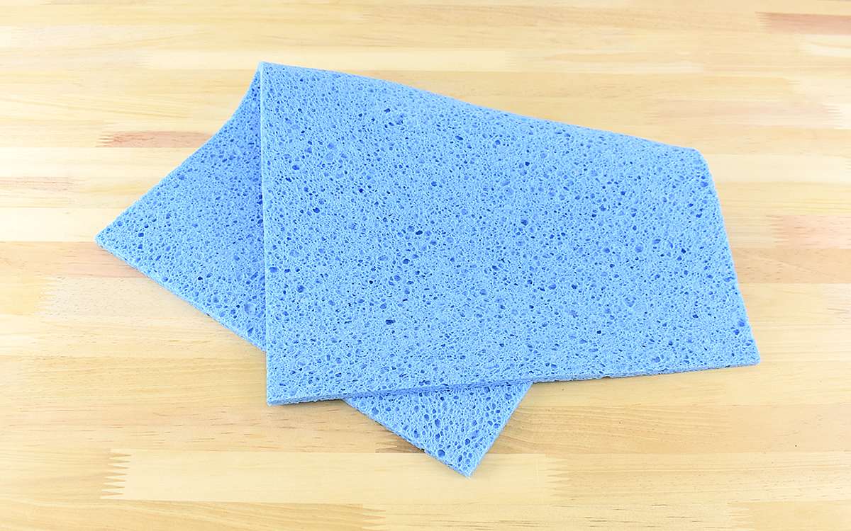 商品の見た目はボコボコと穴があり、触れてみると紙でできたスポンジのように感じました。素材のセルローズは植物繊維生まれで、やわらかく吸水性に優れているのが大きな特徴です。