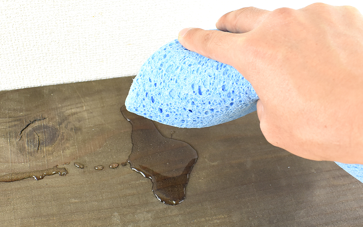 次にテーブルにこぼしてしまった水分を拭き取ってみましたが、触れるだけで吸水していきました。大量に水分を吸い取った際も、軽く絞れば何度でも使えます。しかしねじるような絞り方や、無理に引っ張って使うと破れてしまうことも。また水気がないときも破れやすくなるので注意してくださいね。