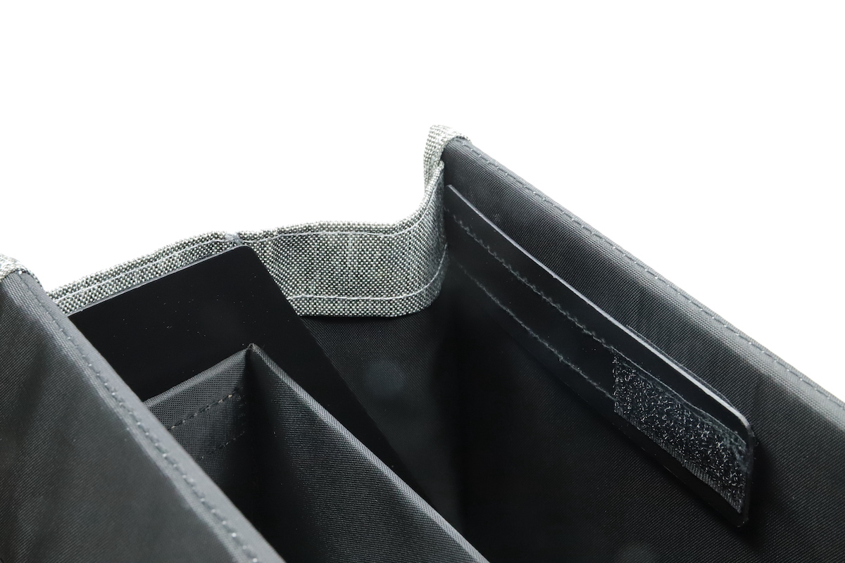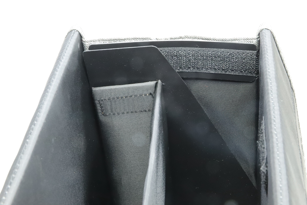 内部の中央に取り外し可能な仕切りがあるので、ノートPC/それ以外のツール、といったようなざっくりとした整理をしておくと、運用しやすい。