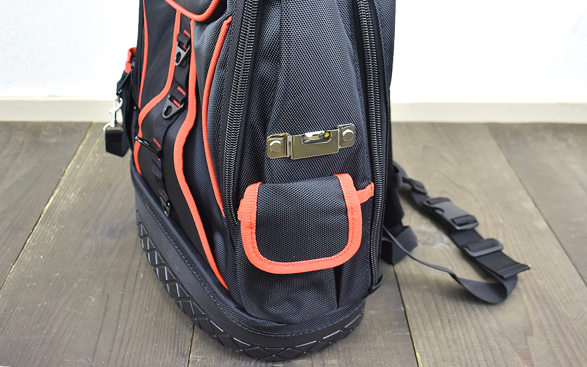 イチ押しなのは脅威のポケット数。背面内28個・前面内4個・サイド4個と合計36個ものポケットが付いています。ブラックベースにレッドの差し色カラーも目を引きますよね。サイズは約430(高さ)×360(幅)×190mm(奥行き)。生地が厚く工具を入れても破けなさそうな丈夫さも購入の決め手となりました。