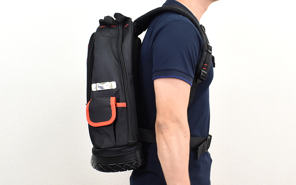 耐荷重は15kgとなっており、工具をたくさん入れられるので安心。両手が空くので脚立なども楽々持てます。