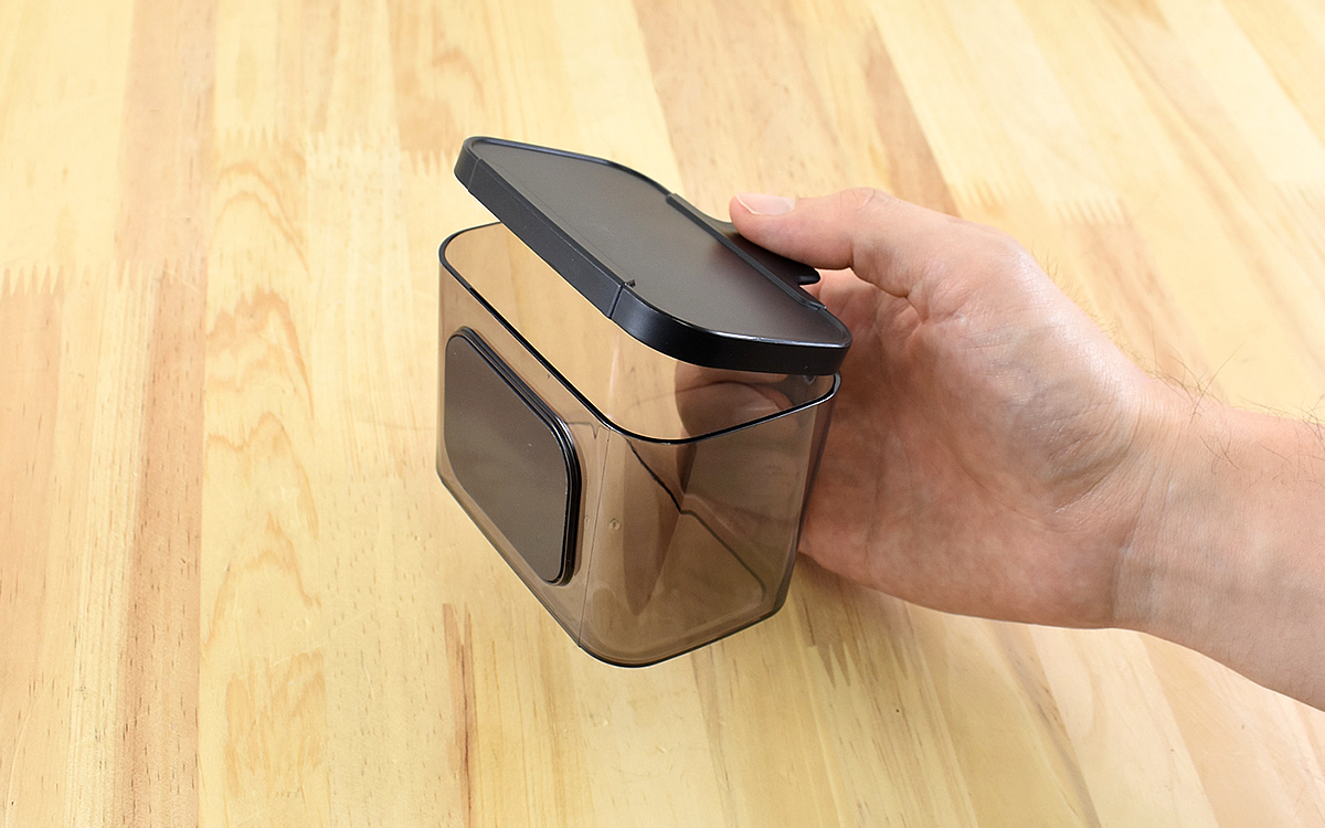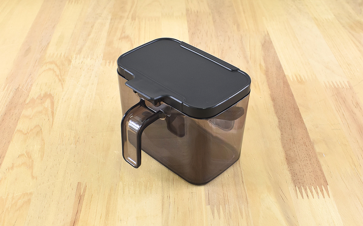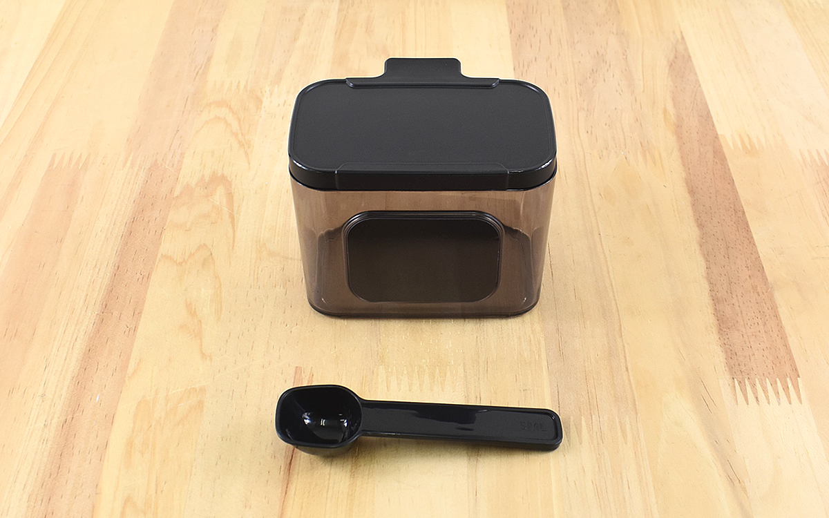片手で持ってワンタッチで開けられるので、忙しい料理中にサッと調味料がすくえるのは助かりますよね。本体の重さは重すぎず、かといって「安っぽいな」と感じるほどは軽くないので安心感があります。