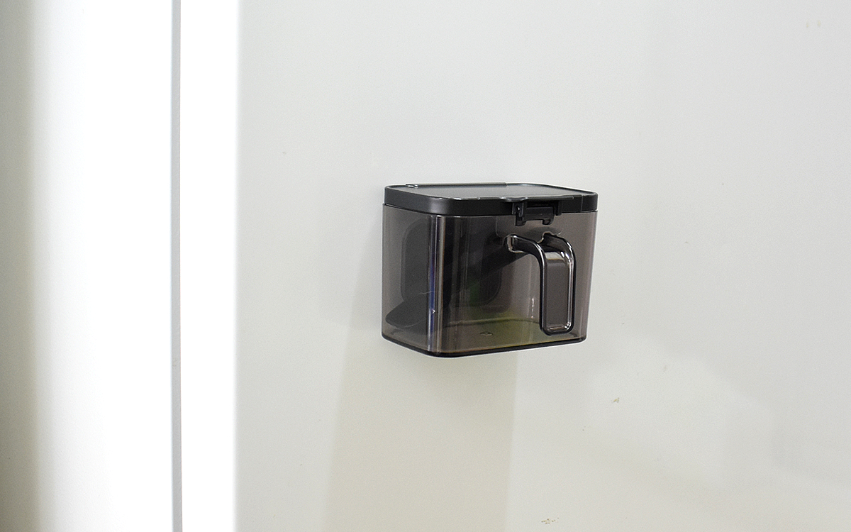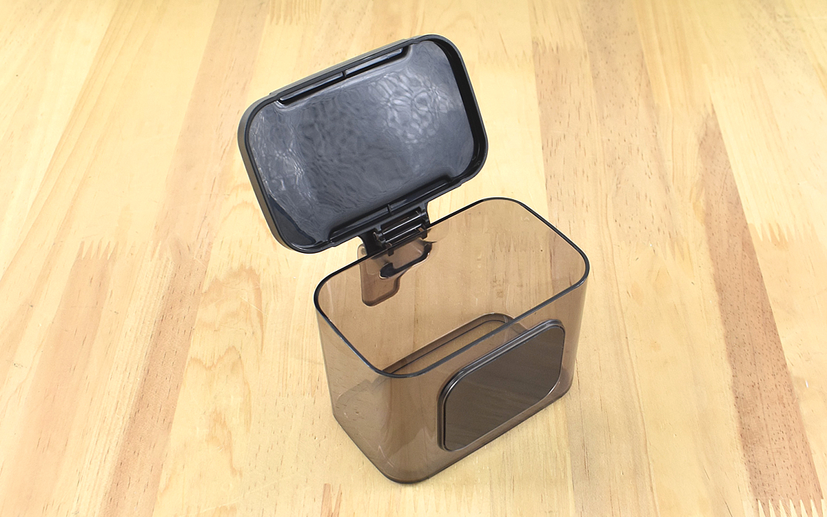 一見よくある調味料入れですが、一番の特徴は本体側面に磁石がついているところ。大きさは約9.7(横)×9(縦)×7.5cm(高さ)、入れられる容量は300mLなので多すぎず少なすぎずのちょうど良いサイズです。本体は半透明で中身が透けて見えるため、残量が一目でわかるという便利さもGOOD。フタが大きく開くところが、使いやすいし洗いやすくてオススメです。