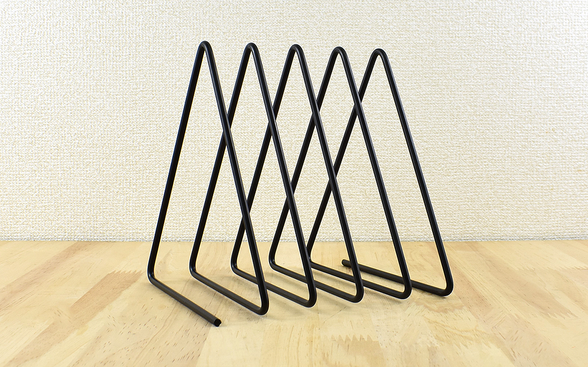 複雑そうに見えますが、よく見ると1本の鉄材をトライアングル上に曲げていったシンプルなデザイン。平面の据わりも良く適度な鉄の重みもあるので、すぐに倒れる心配もなさそうです。