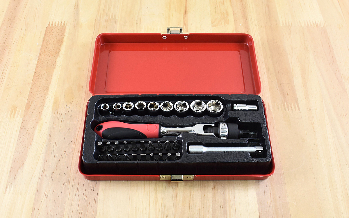 一家に一台はあると便利な工具セット。さまざまな場所で活躍しますが、狭い場所や手の入りにくい奥まった場所だと使いにくいですよね…。そこでモノタロウで入手したのが、痒い所に手が届く「首振りラチェットハンドルセット」(3729円/税込)です。