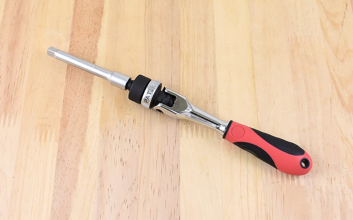 もし首を振っても届かない場所などは、エクステンションバーで長さを変えられるのも嬉しいポイント。ちなみにラチェットハンドル本体は約160mmで、エクステンションバーの長さは約75mmです。