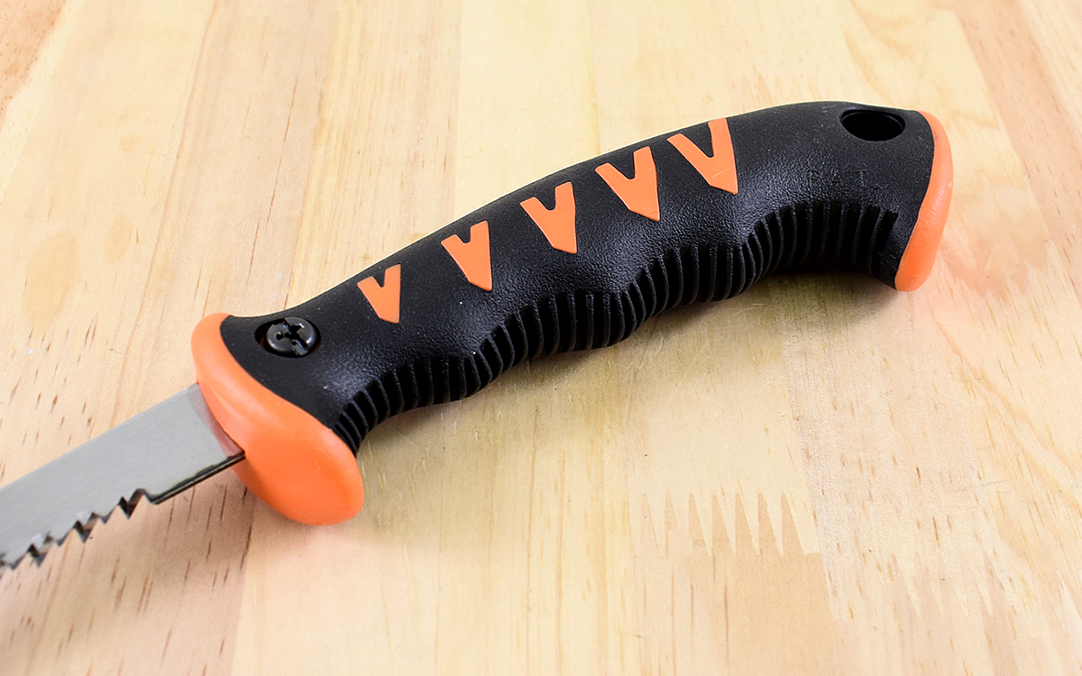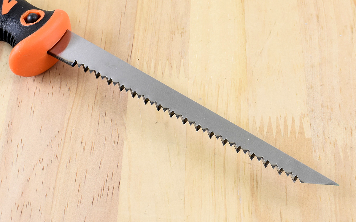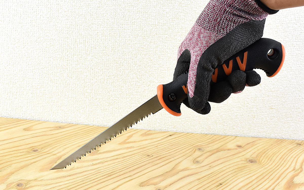 使用してみると、最初の一刀がつっかからずにスッと入りました。刃先部分の先端が鋭角になっているので石膏ボードへの穴開けもスムーズ。穴開けから切り始めまでストレスなく作業できます。また重心とグリップの握りやすさによって無駄な力が入らず、刃先にまで力がしっかり伝わっているのがわかります。期待通りの力強い切れ味でした。