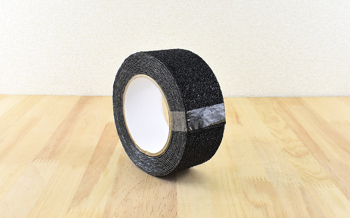 同商品は幅、長さ共に種類があるので、用途に合わせて使い分けが可能。今回は50㎜(幅)×5m(長さ)を購入しました。一般的なガムテープと同じ幅なので、これでも十分太いテープという印象を受けます。階段や脚立など、大抵の場所には問題なく使えそう。他に幅は100㎜、長さは18mがあります。