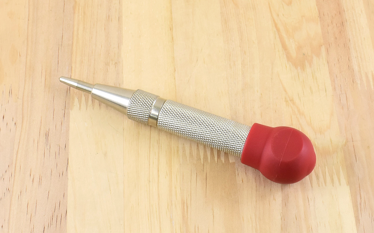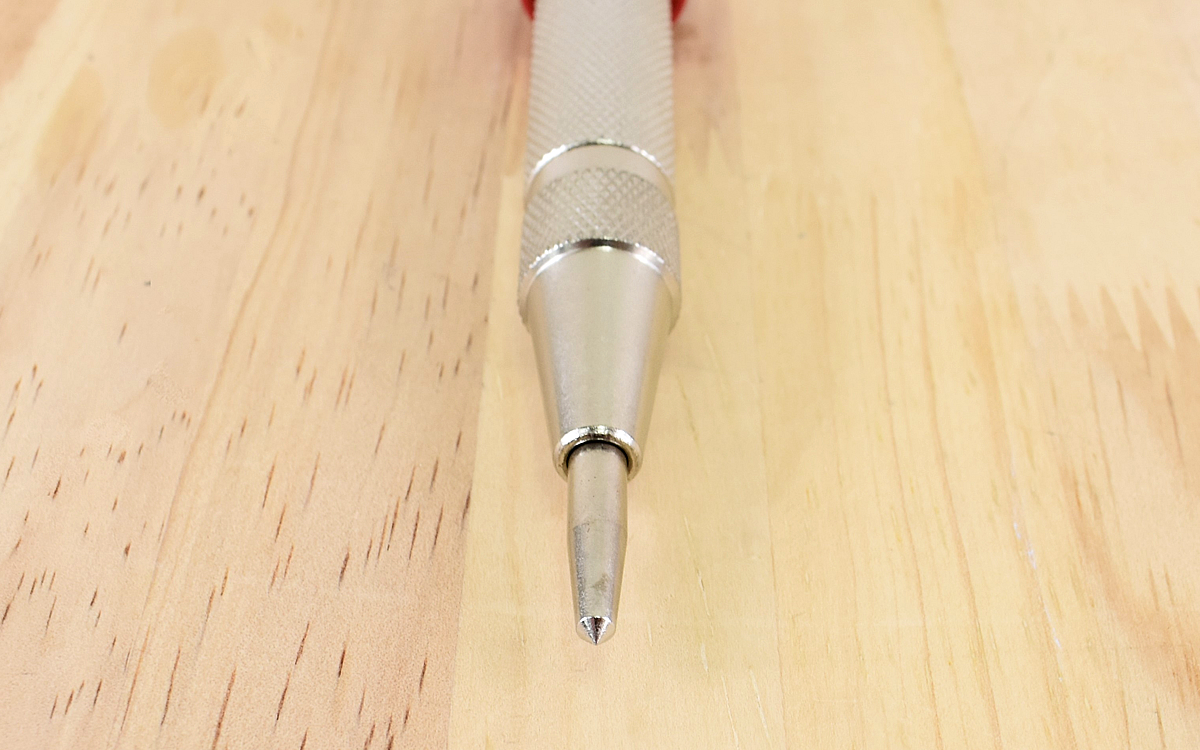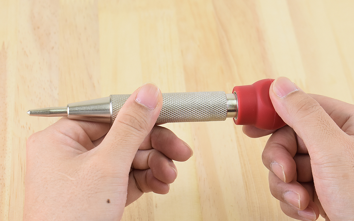 頭を押さえつけるために多少は力を使うものの、片手で扱えるため作業自体はとても楽ちん。キャップ部分を左右にねじることでマーキングの強弱調整もできるので、小さなくぼみで済ませたい時に便利です。