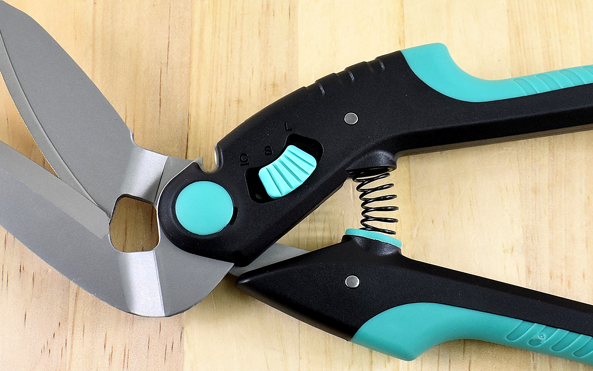 グリップの先端近くにはC・S・Lと記されたスイッチがあり、刃の開閉角度を調整可能。Sに設定すると角度がやや狭くなり、刃の交点部分にあるノッチを使いやすくなります。ノッチ部分を活用すれば、刃先を使わなくても針金やアルミ線をカットできるので便利ですよ。