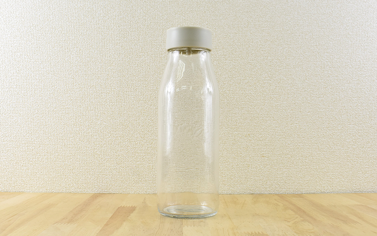 ボトルを持つときも、注ぎ口の向きを気にせずにスッと手を伸ばしてそのまま持つことができます。もちろん手から滑り落ちたりすると、破損の原因になるので注意してください。またボトルはガラス製なので、熱いものを入れたり急激に冷やすのもひび割れなどにつながるのでご注意を。