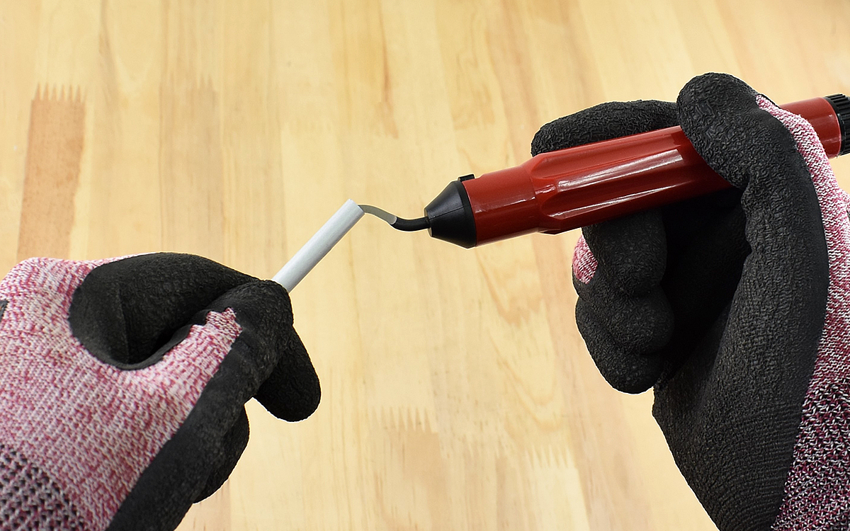 それでは実際にバリ取りをおこなってみたいと思います。本体とパイプに対してブレードがクルクルと回転するため、本体やパイプを回しながらバリ取りをする手間がありません。ハンドルを持った手を円状に回すだけできれいにバリが取れていきました。力を込める必要もなく、重さもないため手が疲れないのもGOODです。